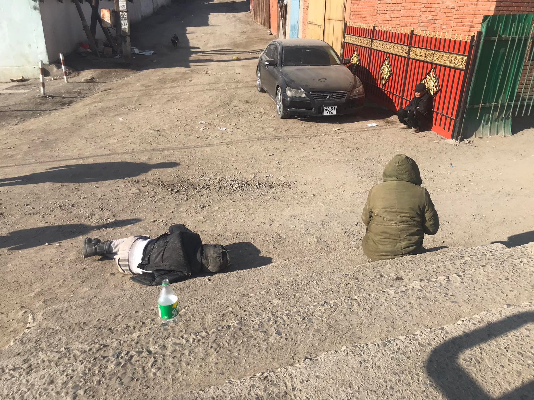 Цааш алхсаар 32-ийн буудалд ирлээ. Энэ бол энэ дэнжийн уугчдыг гол цэг бөгөөд эндээ бөөгнөрч уугаад, шууд унтаад өгнө. Урин цагт бол хаана ч унтсан болох ч хүйтний улиралд хөлдөх аюултай. Энэ удаад биднийг очиход ч мөн л хоёр хүн унтаж байх бөгөөд хажуугаар нь хүмүүс зөрнө. Харин гүүрний буланд арай өөр хоёр нь сууж байх бөгөөд “Хаанаас мөнгө олж дахих уу” гэсэн байртай бие бие рүү гээ харан, хармаандаа гараа хийж сууна. Нэг нь тоос, шороо болсон хүрэмнийхээ хармаанаас “Нокио” утас гаргаж ирэн, халтартсан хуруугаараа хэд дараад чихэндээ барина. Тэгснээ “Түй чоорт, энэ муу утсаа авахгүй л дээ” гэж бухимдана. Тэгээд л хажуугаар нь зөрөх хүмүүсийг дээрээс нь доош хүртэл гүйлгэж, хэн бидэнд туслах бол гэсэн өрөвдмөөр харцаар харна. Тэд ингэж л өдөр хоног, цаг мөч бүхнийг архинаас архины хооронд өнгөрүүлнэ. Зарим нь хүүхэдтэй, гэр бүлтэй байдаг ч тэднийгээ орхиод, ийн гудамжинд амьдрах сонголтыг хийсэн. Тэгээд аль нэг дэлгүүрийн хажууд, гүүрний дор хоног төөрүүлнэ. Харин гэртээ аавгүй, ээжгүй хүүхдүүд, хүү нь гудамжинд гарчихсан ээж сууж байгаа гээд бодохоор харамсмаар санагддаг.