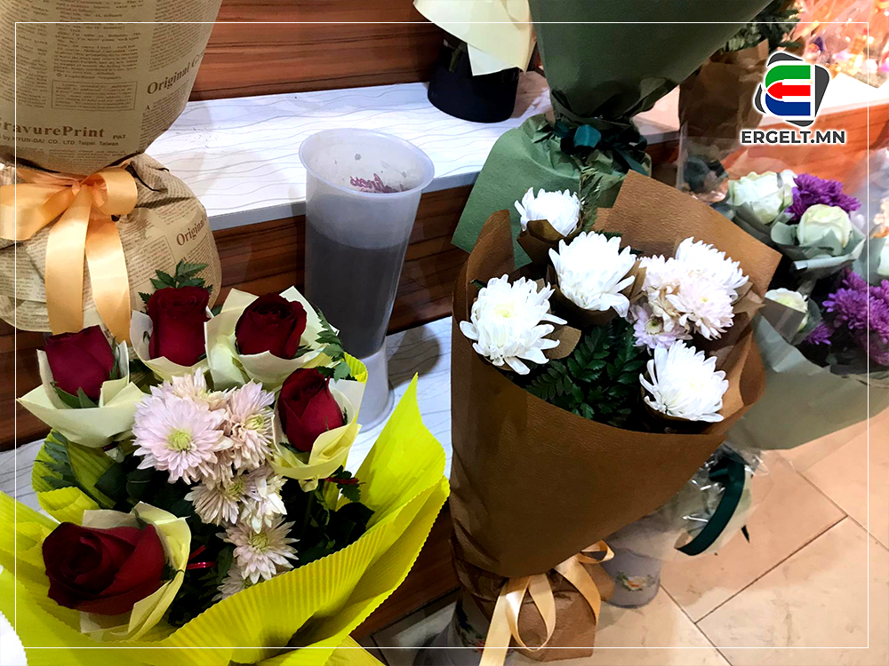 Цааш явсаар бид Цэцэг төвд хүрэв. Манай улсын цэцгийн гол цэг болсон тус газар биднийг очиход мөн хүн ихтэй харагдана. Худалдагчид нь цэцгээ шинээр боож байх бөгөөд шинэхэн цэцгийн үнэр ханхийнэ. Энд, нэг ширхэг сарнай 9000 төгрөгөөр худалдаалагдаж бөгөөд таван ширхэгээрээ 65 мянгаар зарж байв. Харин лили цэцэг 40 мянган төгрөгөөр худалдаалагдаж байв. Цэцгүүдийн үнэ өөр, өөр байгаагийн шалтгааныг асуухад "Бэлгэдэл болоод үнэ цэнээсээ хамаарч үнэ нь өөр байдаг. Мөн боодлоороо илүү үнэтэй зарагддаг. Цэцгэн дээр боодол баглааны үнэ мөн нэмэгддэг. Тухайлбал, нэг ширхэг лили цэцэг 25 мянга, гурван ширхэг сарнайтай цэцгийн баглаа 35 мянга, удвал цэцэг ширхэг нь 7500 төгрөгөөр борлуулагдаж байна. Цэцэг гэдэг бол тансаглал болсон зүйл, хэдийгээр дорхноо гундаад үхчихдэг ч хүмүүсийн гоёлын хэрэглээ болсон зүйл. Энэ ч утгаар хүмүүсийн үнэтэй ч хайртай дотны хүмүүстэй мөнгө харамлалгүй авч байна" гэв.