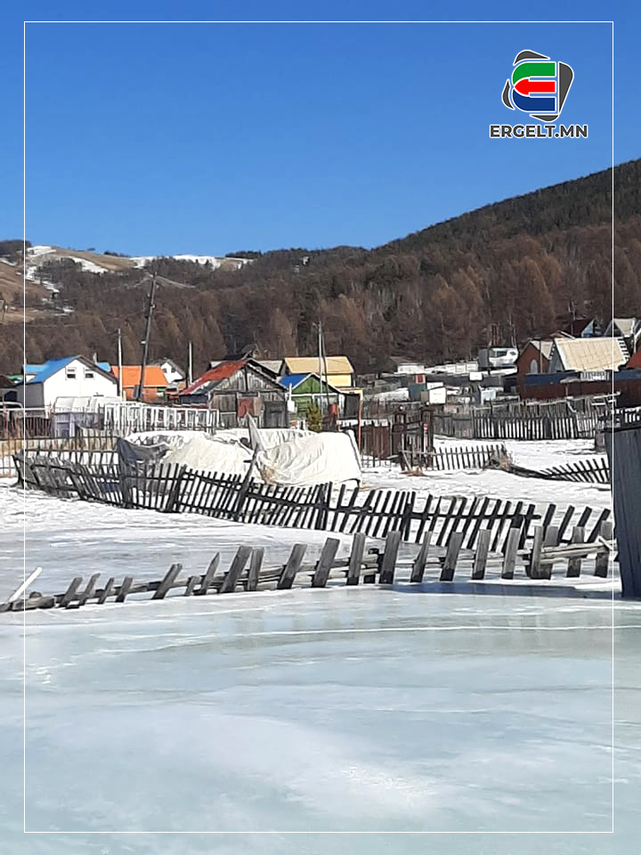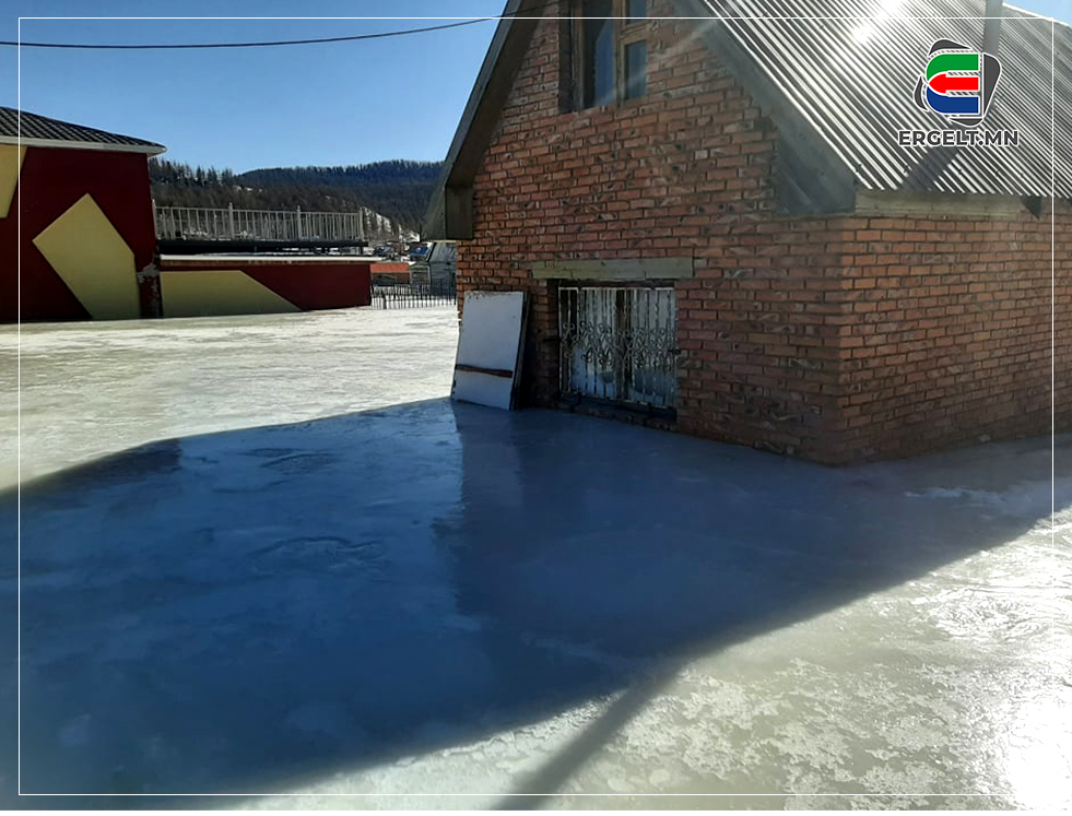 Алхсаар эцсийн буудал орох замдаа засмал замын хажууд доош буух шаттай бусад газраа бодвол нам доор, тэгш хэсэгт байрласан хэсэгт хамгийн эхний мөстсөн хэсэгтэй таарлаа. Тэгш газар бус газрын хонхор хэсгийн дүүргэн, тэгш талбай болтол мөстжээ. Хамгийн эхэнд харсан дүр зураг цахилгааны шонгийн доод хэсэг битүү мөсөнд бүрхэгдсэн байв. Улаан тоосгон байшингийн цонх руу мөс орон хөлджээ.Сайтар харвал цонхны дотор тал ч мөстсөн нь харагдана. Мөсний гадаргуун дээр эгнээ үүсгэсэн олон шовх модон банзнууд байгаа нь энд хашаа байсныг илтгэнэ. Арай өндөрлөгт байсан айлын гэрийн үүд хүртэл мөсөн зам татагдсан. Мөсөн дээр хөл тавьсан цагаас эхлэх мөсний цуурах дуу аниргүйг эвдэнэ. Олон айлын зуслангийн газар гэмээр сараалжин төмөр хашаанд цуван байрласан улаан модон байшингуудын томхон талбай тэр чигтээ мөсөнд автжээ. Байшингуудын голд байх хүүхдийн тоглоомын талбайн төмөр савлуурын сандал хүртэл мөсөнд зоогдож хөдөлгөөнгүй болсон байлаа. Энд хашааны зөвхөн үзүүр хэсэг л зам заана. Жижиг улаан байшингийн бараг дээвэр нь л ил харагдана. Урд нь байх монгол гэрийн дугуйлаад орхисон хана мөсөнд гүн шигтгэгдэж яасан ч хөдлөхөөргүй болжээ. Хоёр давхар байшинг нэг давхар болж харагдах хүртэл энэ мөс дээшилжээ. Машин орж гарах зориулалттай өндөр төмөр хашааны хаалганы дөнгөж үзүүр хэсэг нь харагдана. Энд 3-4 цахилгааны шон байрладаг, цахилгааны унжсан утасны үзүүр мөстэй наалдсан чигтээ өдөр хоногийг өнгөрүүлж байна. Хэрэв ус цахилгааны хооронд богино холболт үүсвэл энд гулгахаар ирдэг багачуудад ямар аймшигтай аюул нүүрлэх нь тодорхой.