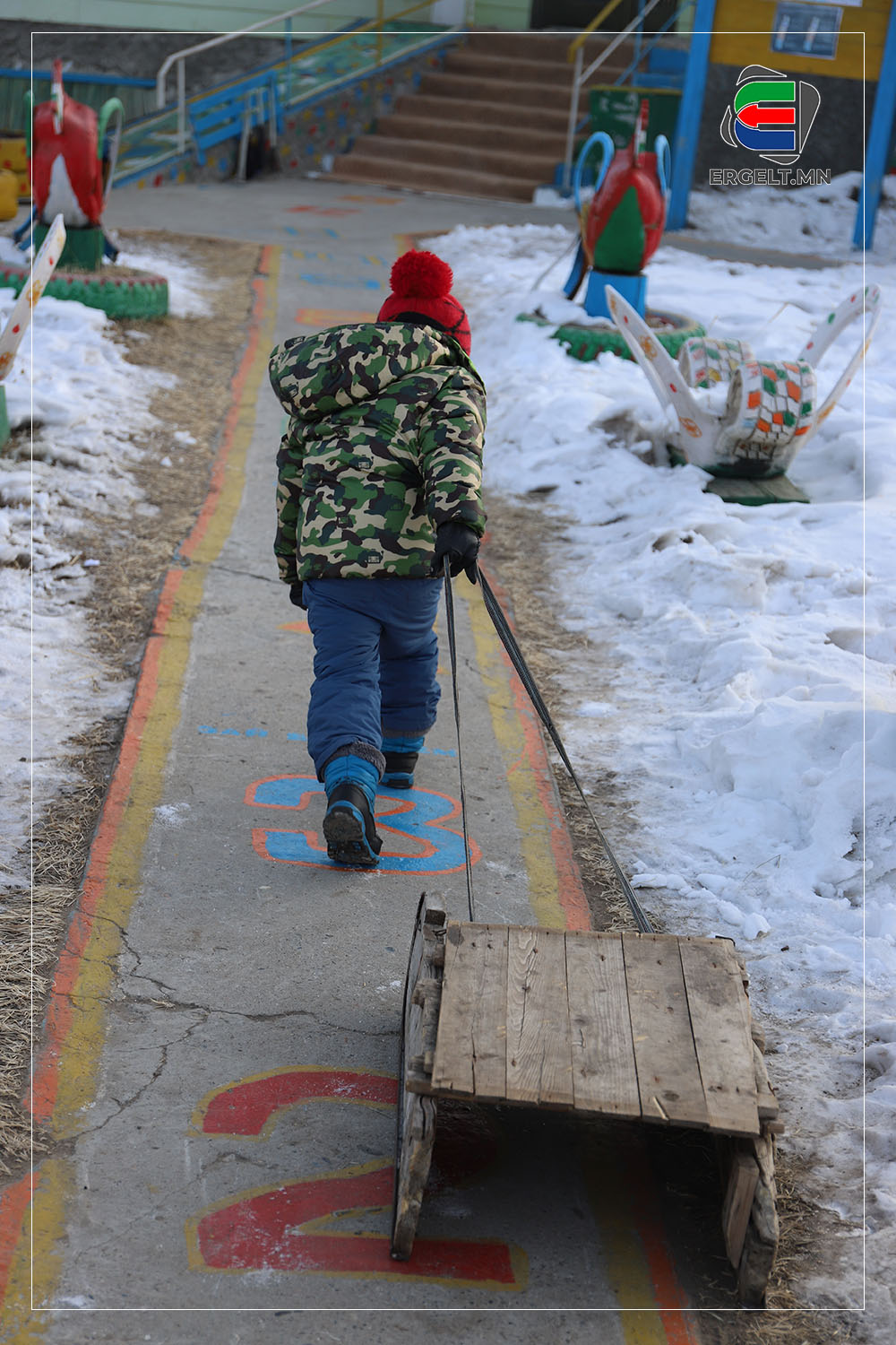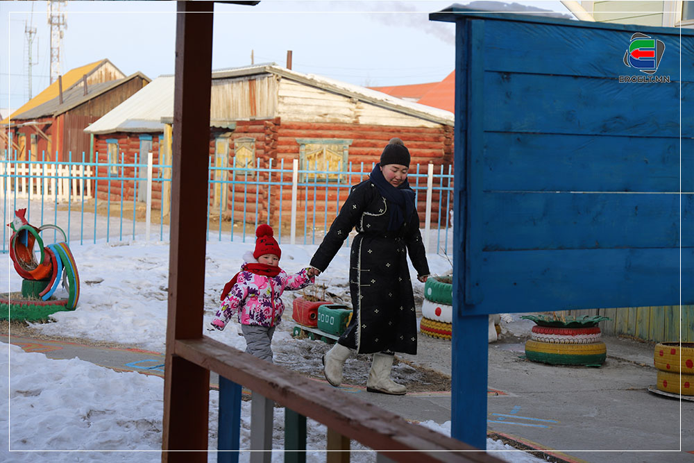 Үдийн нар тооно голлох үеэр ганц, нэг хүн ирж, цэцэрлэгийн гаднах чарганы зогсоолыг эргэж байна. Давхар дээлээ хөөргөж өмссөн бадриун эр ирээд төмөр чарган дээр жийрэглэж тавьсан зөөлөвчийг аваад явлаа. Цэцэрлэгийн хашааны хажууханд байх хүнсний дэлгүүр рүү орж, эсгий зөөлөвчийг галласан зуухны дэргэд тавиад худалдагч руу толгойгоороо дохичхоод гарав. Тус дэлгүүрийн эзэн гэх эмэгтэй “Өнөөдөр ч айхтар хүйтэн байна. Явж хүүгийнхээ чарган дээрх дээлийг авахгүй бол цаад “их хүн” чинь орой тараад хүйтэн дээлээр хөлийг нь хучвал аашилна шүү” гээд өнөө бадриун эрийн араас гарч явлаа. Эцэг, эхчүүд хүйтэнд хүүхдийнхээ чарганы дулаалгыг өдөр нь очиж аваад орой нь хүүхдээ авахаар ирэхдээ дулаан жийрэгтэй ирдэг юм байна.