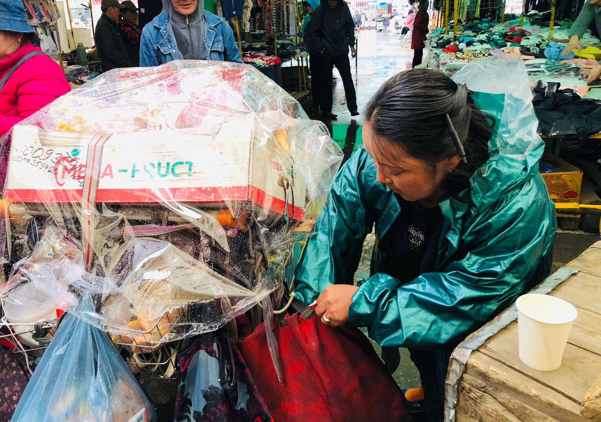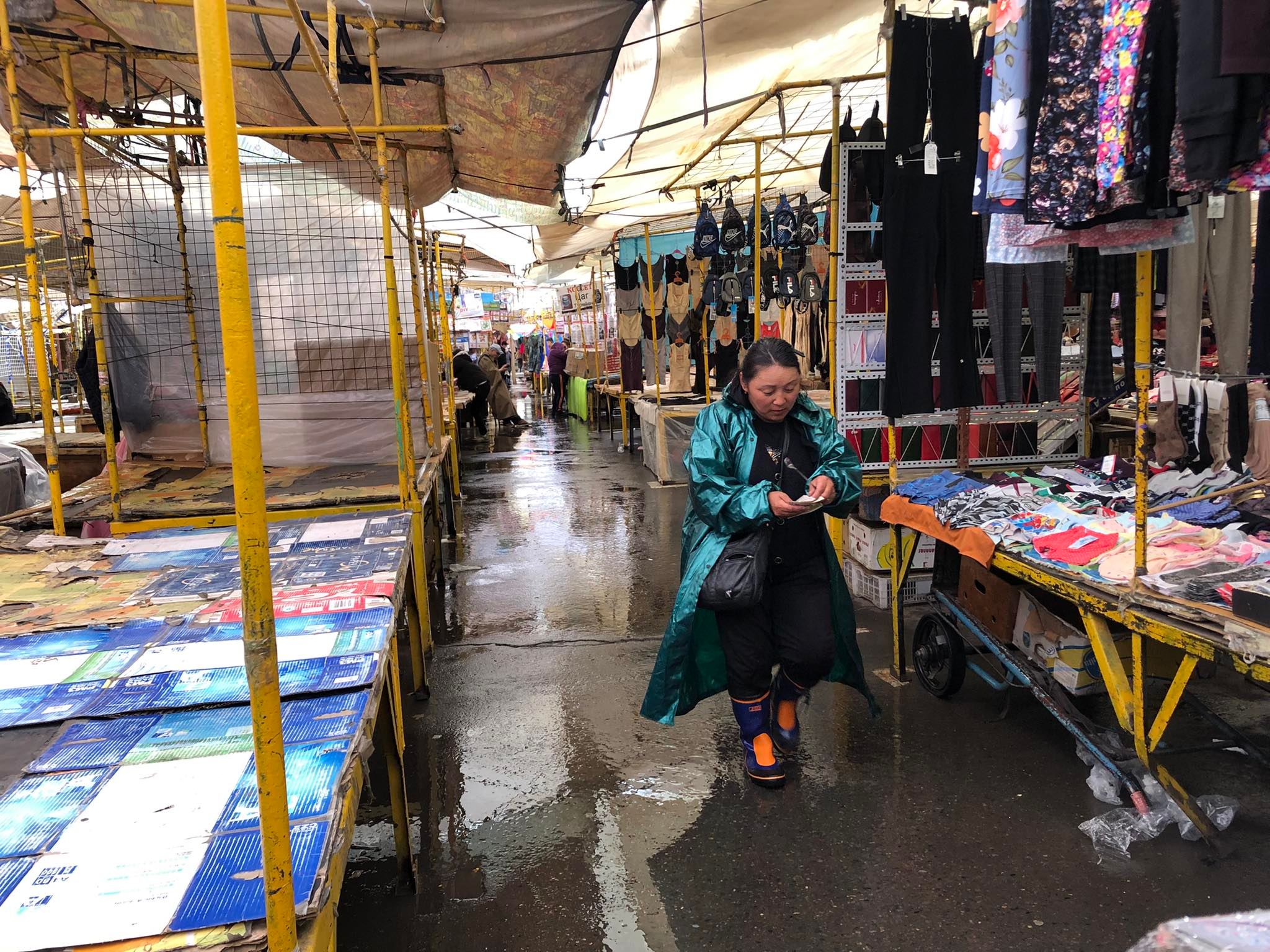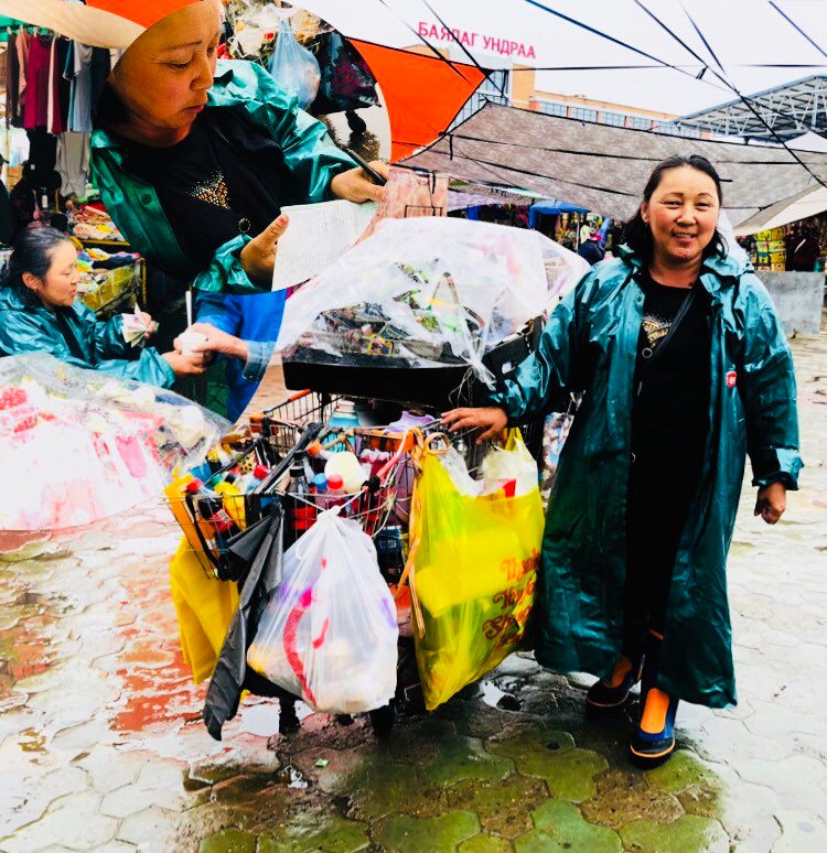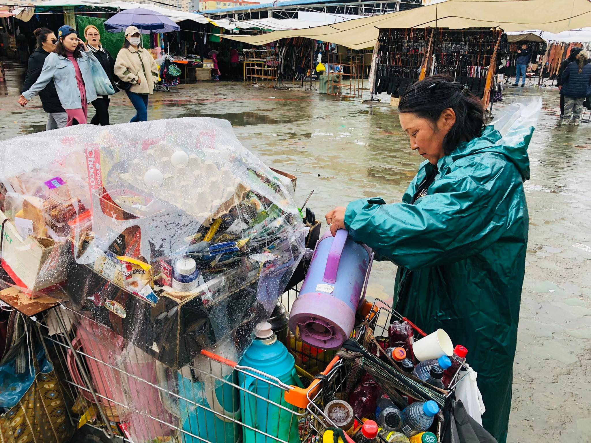 Тэрбээр “Би таван жил гаруй хугацаанд Нарантуул зах дээр ажиллаж байна. Саяхан дахиад л хил хаачихлаа. Улирлын шинжтэй бараа борлуулдаг худалдаачдад хэцүү байна. Манайх гэхэд л гэр бүлээрээ Нарантуул зах дээр бизнес эрхэлдэг. Эхнэр маань төрөх дөхөөд, гэртээ байгаа. Энэ хугацаанд нь хэдэн төгрөг олж, бараагаа борлуулъя гэсэн хэцүү л болоод байна. Бараг өмнө нь захисан бараануудаа авч чадаагүй байтал хил, гаалийн асуудал гараад ирлээ дээ. Өнгөрсөн жил бас л нэг иймэрхүү зүйл болсон. Иргэдийн худалдан авах чадвар өмнөх үеийг бодвол буурсан. Гэхдээ бас чиг учиртай л байна. Нарантуул зах чинь борлуулж буй бараагаа хамгийн хямд, бөөний үнээр зардаг газар шүү дээ. Тийм болохоор орон нутгаас болон Улаанбаатарын худалдаачид бөөндөж авдаг болохоор харьцангуй хүнгүй болчихоогүй л байна. Ковидын дараа Нарантуул зах дээр худалдаа эрхлэх хүмүүс цөөрч, хоосон лангууны тоо ихсэж байна. Манай лангуу саравчин доор байдаг болохоор өвөлдөө нар үзэхгүй их хүйтэн. Зундаа бол гайгүй. Ер нь тэгээд их л уйгагүй л ажиллаж байж юманд хүрнэ дээ. Жилийн дөрвөн улирал, долоо хоногтоо нэг л өдөр амарна. Барааныхаа дэргэдээс холдож болохгүй. Холдвол худалдан авалт хийх хүн багасна. Би өглөө 9:00 цаг дөхүүлээд л зах дээр ирдэг. Ирээд хувцаснуудаа гаргаж өрж тавина. Оройдоо 19:00 цаг өнгөрөөд бараагаа хурааж эхлээд 20:30 орчмын үед ажил дуусна даа. Өнөөдрийн тухайд бороотой болохоор үйлчлүүлэх хүн бага байна. Тэгээд эртхэн бууна даа” гэсэн юм. Бороотой энэ өдрийн Нарантуул захын талаар худалдаачин Д.Батдоржоос тодруулах хооронд Соко эгч маань хэдийнэ гурван халуун сав, буцалсан усаа цай, кофе болгоод зарж дууссан байлаа.