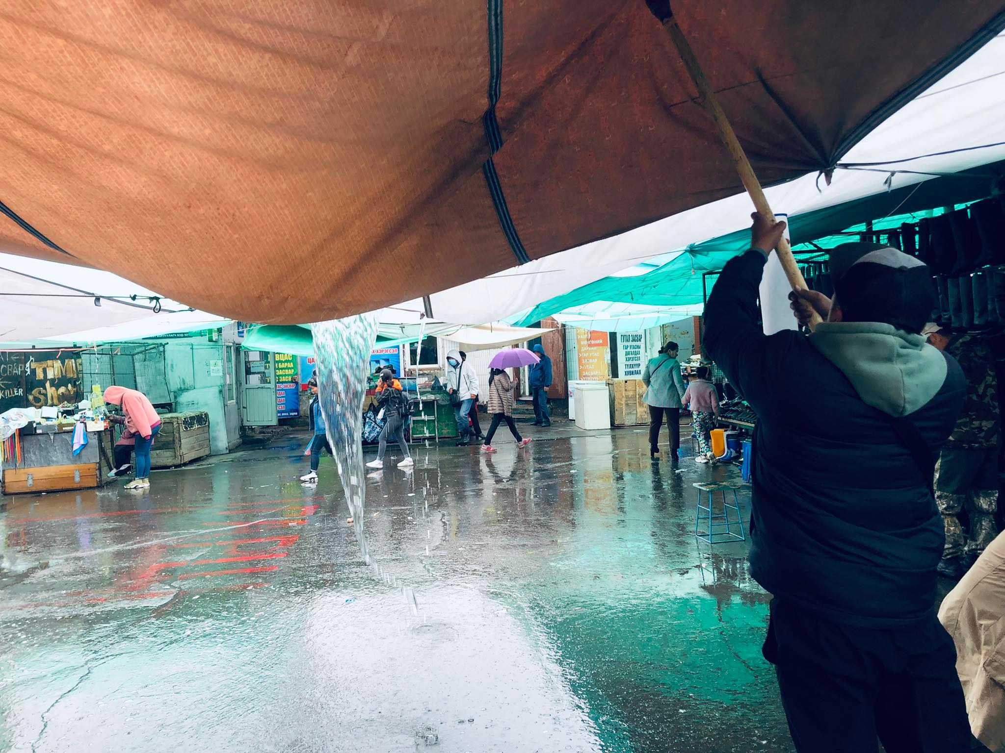 Нарантуул захын дээвэр нь хоёр ялгаатай. Баруун болон зүүн хэсгээр төмрөөр хийсэн байдаг бол төв болон зах хэсгээр даавуун дээвэртэй юм билээ. Даавуун дээвэртэй хэсэгт худалдаа эрхлэгчид урт гэгч хүрзний иш болон, нарийн урт зүйлээр даавуун дээр тогтсон усыг асгаж буй дүр зураг элбэг. Асгаж байх явцад дээрээс нь ус асгарч таарвал хэсэгтээ битгий хэл мөддөө хатахааргүй. Иймэрхүү нөхцөл байдал Соко эгч хэдийнээ дасчихсан. Хөдөө, хотоос үйлчлүүлэх иргэд өчнөөн байхад, олон жил болж байгаа энэ дээврийн асуудлаа шийдэж болдоггүй л юм байхдаа гэсэн бодол төрөн цааш алхлаа.