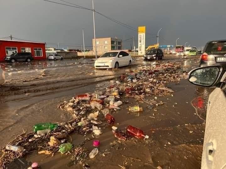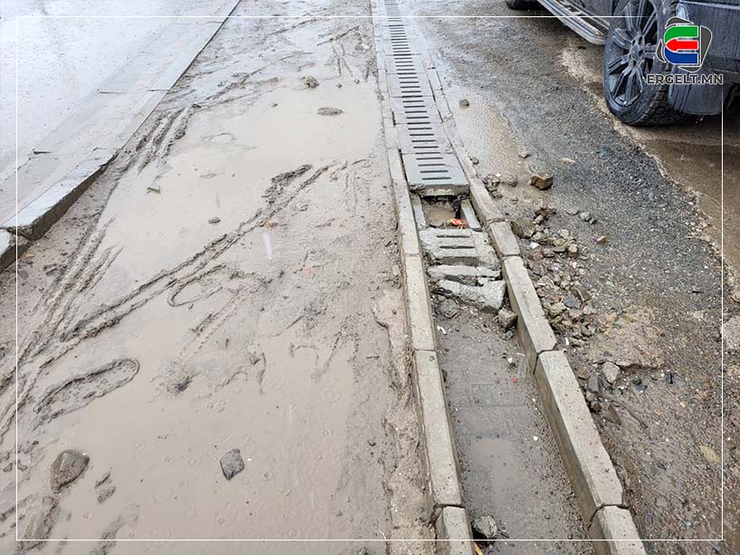 Гэр хорооллын гудамжаар хэдэн үе дээшээ алхаж, уулын энгэрт хүрэхэд ийм байдалтай байлаа. Бид доошоо алхсаар, халтирч унахгүйн тулд хашаа налж явсаар Дарь-Эх чиглэлийн автозам дээр тулж ирлээ. Авто замын хажуугийн ус зайлуулагч нь хогоор дүүрч, бөглөрчээ. Ус зайлуулагч хэзээ бөглөрсөн, борооны үеэр ойр хавь ямар нөхцөл байдалтай байгааг тодруулахаар замын хажуугийн дэлгүүрт орлоо.