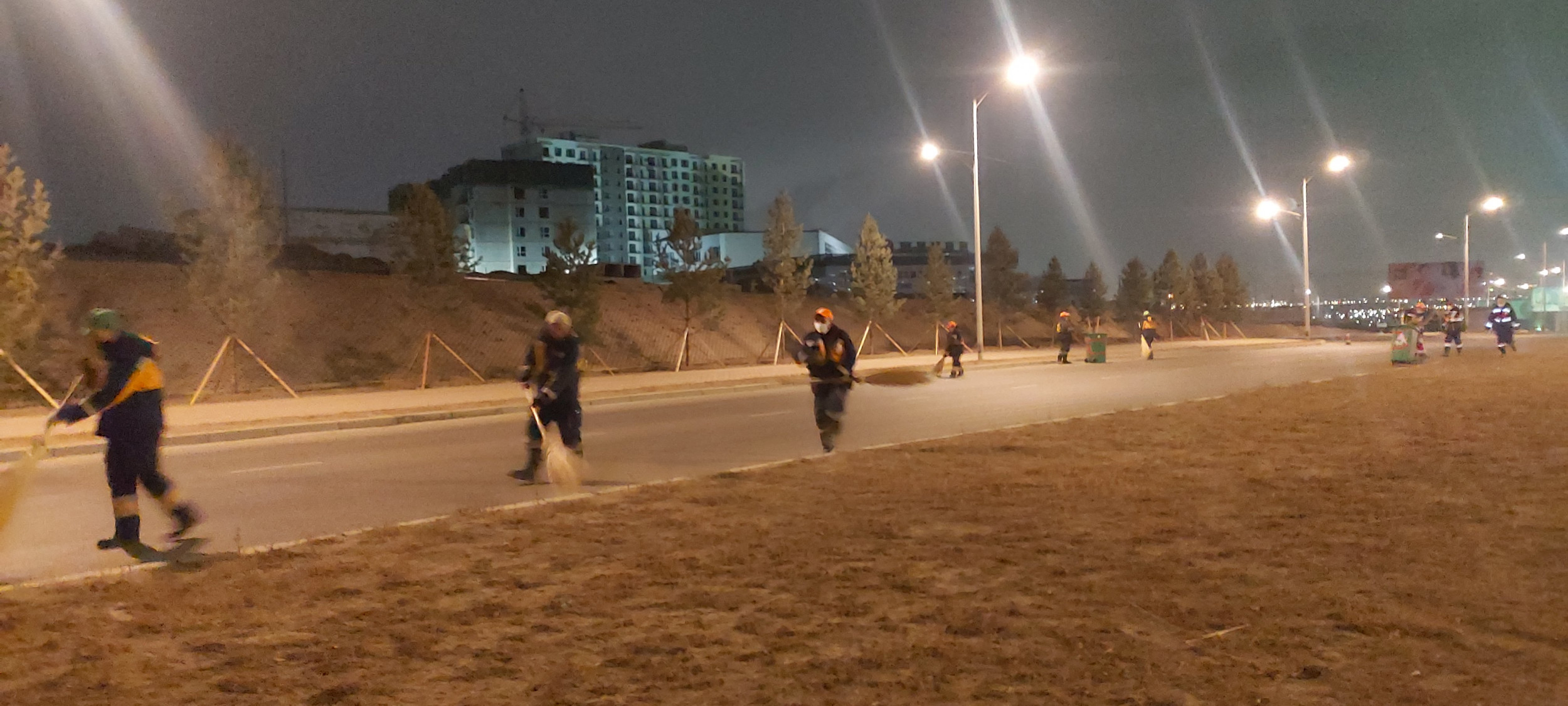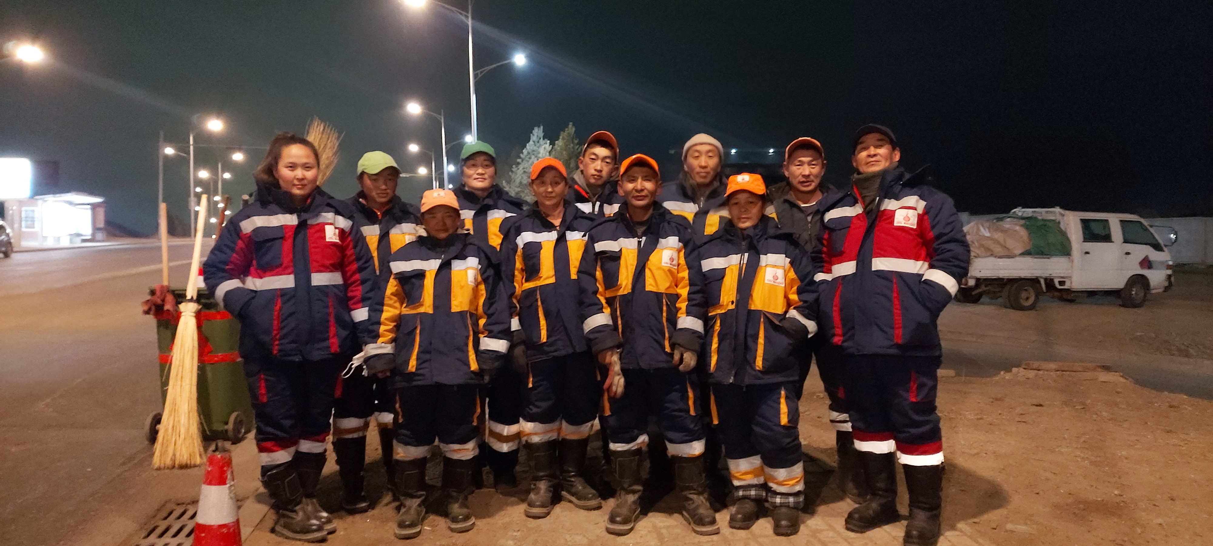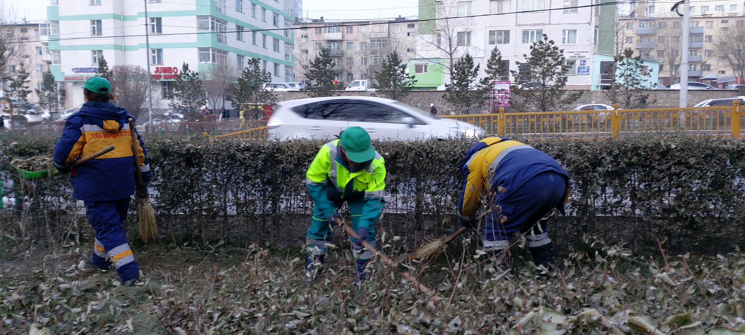 Цас бударсан шинэхэн өглөө. Цэлгэр өргөн гудамж, цэцэгт ногоон талбай, цэгцтэй төлөвлөсөн хорооллуудтай амар тайван Улаанбаатарын өнгө төрхийг нэмэхэд халуун сэтгэлээ зориулдаг ТҮК-нийнхний ажил эхэллээ. Биднийг 05:00 цагт Нисэхийн аюулгүйн тойрог дээр очиход ажилчид хувийн бэлтгэлээ хангаж, шүүрээ барьж, хогийн саваа түрсээр цэвэрлэх зам талбайгаа хуваарилаж байв. Тухайн ажлын хэсэгт 11 хүн хуваарилагдаж Нисэхийн аюулгүйн тойргоос Шувуун фабрик хүртэл 27 км зам талбайг цэвэрлэдэг байна. Нийслэлийн зам талбайн хогийг цэвэрлэж, хотын хөгжил, цэцэглэлтэд үнэтэй хувь нэмэр оруулахын төлөө халуунд халж, хүйтэнд хөрж “өөрийгөө умартан” ажилладаг ТҮК-ийн ажилчдын ажил амьдрал, жаргал зовлонг хуваалцахаар тэдэнтэй цөөн хором хөөрөлдөв. “Охь мандал” ХХК-ийн ерөнхий инженер Ц.Энхболд “Би хот тохижилтын салбарт 1985 оноос хойш өнөөдрийг хүртэл ажиллаж байна. Өмнөх жилүүдийнхийг бодоход ТҮК-ийнхэн зам талбайг олноор хариуцан ажиллаж байна. Өглөө 05:00 цагаас ажил эхэлдэг учир нь иргэдийг ажилдаа явахаас өмнө автобусны буудал болон ойролцоо гудамж цэвэрлэж тэднийг цэмцгэр орчинд байлгах, цас орсон үед жолооч нарыг замын хөдөлгөөнд аюулгүй оролцуулах үндсэн зорилготой. Өглөө эрт замын хөдөлгөөний ачаалал багатай үед цэвэрлэх нь амар байдаг. Өвөл цас орохгүй бол ердийн хуваарийн дагуу ажилладаг. Иргэдээс хогоо хогийн саванд заавал хийж байгаарай гэж хүсэх байна” гэв. Харин “Охь мандал” ХХК-ийн Зам талбай хариуцсан бригадын дарга Н.Гантулга “Хайрганы машин, барилгын хог ачсан машин замын голоор хог, шороо асгах нь их. Асгарсан шороо, хогийг цэвэрлэхээр замын дунд хавьд очихоос аргагүй ч цэвэрлэх явцдаа машинд дайруулчих гээд хэцүү байдаг. Иргэд тамхины иш, амны хаалт, ундааны сав, архины шил, чихрийн цаас гээд ахуйн хог их хаядаг. Бид өөрсдийгөө тоос, шорооноос сэргийлж амны хаалт хэрэглэх, салхи шорооноос нүдээ хамгаалахын тулд нүдний шил зүүх гэх мэтээр аюулгүй байдлаа дор бүрдээ хангах ёстой. Байгууллагын зүгээс өвөл, зуны хувцсаар хангаж, цалингаа хугацаандаа өгч, ажилчдыг байр, хоолоор бүрэн хангадаг. Манай ажилчид сар 700 мянгаас дээш төгрөгийн цалин авдаг” гэв. Ажлын хэсгийн ахлагч ажилчдыг дуудан, цуглуулж хамт зураг даруулав. Хэдэн зураг дарсаны дараа ахлагч дор бүрт нь үүрэгт ажлаа биелүүлэхийг даатгаж, ажилдаа шамдан орохыг үүрэгдсэн юм. Харин бид ажилчдын амрах байранд очлоо.