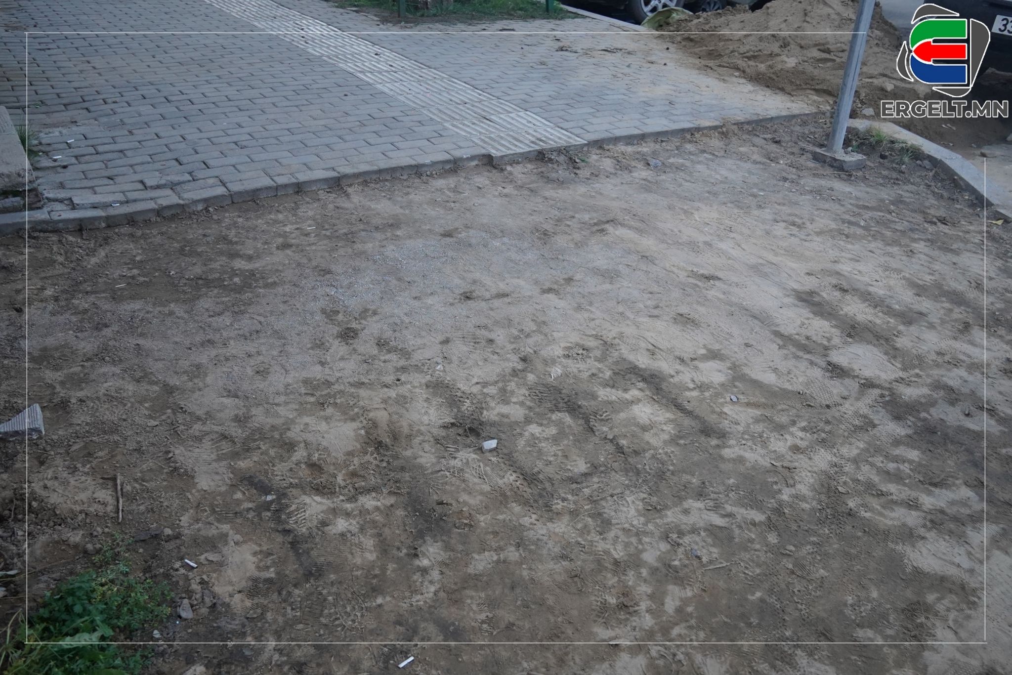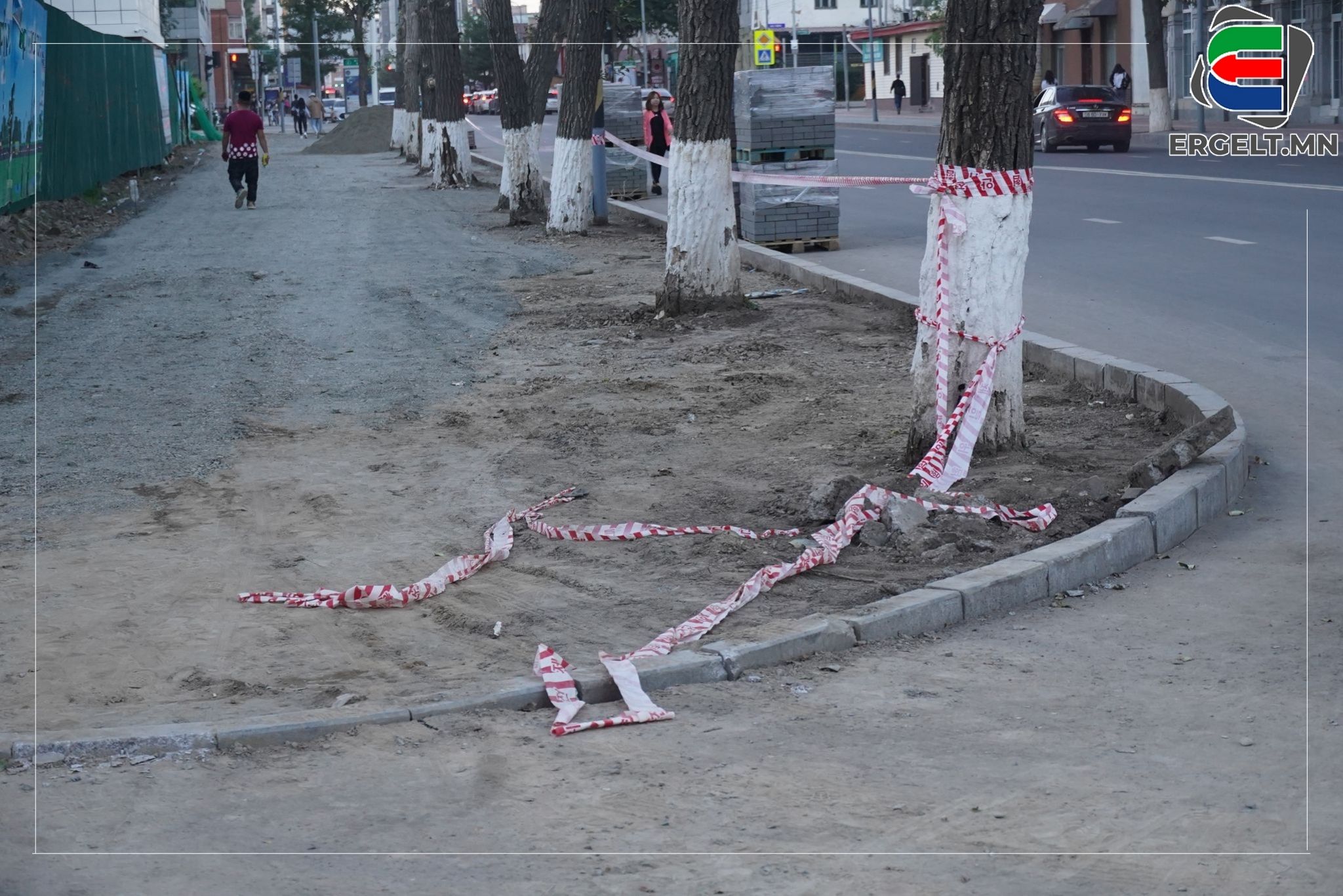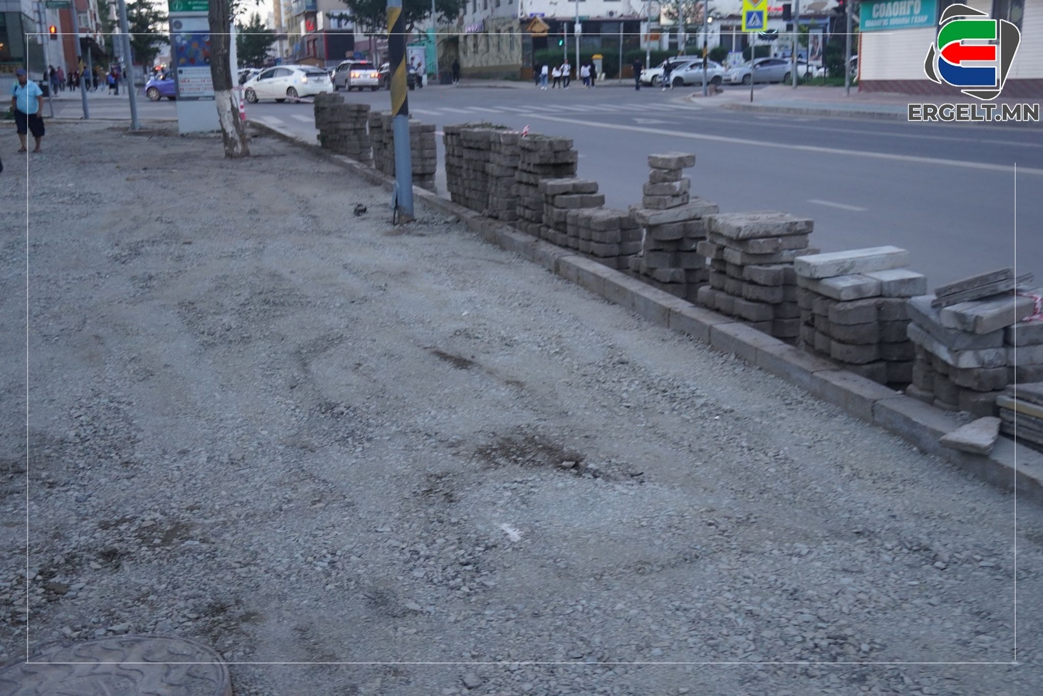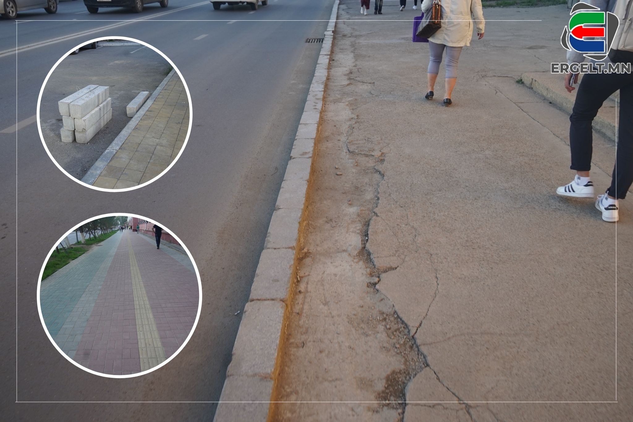 Улсын драмын эрдмийн театраас Баянгол зочид буудлын автобусны буудал хүртэлх зам дагуух явган хүний замыг наймдугаар сарын 8-12-ны өдрийг хүртэл стандартын дагуу шинэчлэх ажил өрнөсөн байна. Тус газарт очиж үзэхэд өмнөх явган хүний замын хэмжээнээс бага зэрэг хэдэн см-ээр өргөжүүлсэн харагдана. Гэсэн ч иргэдийн хөдөлгөөн үл тасрах тэрхүү замаар зөрж алхахад ч хүндрэлтэй хэвээр л байлаа. Түүнчлэн замын бродюрийг нэг бүрчлэн сольж, шавар цементээр бэхжүүлсэн байна. Зарим газраа зай завсар гарч, удахгүй салж унах дөхсөн харагдах бөгөөд бүрэн, дүүрэн хийж дуусгаагүй аж. Иргэдийн ярьж байгаагаар “Замын тохижолтын ажил үргэлжилж байх явцад энэ хавиар явахад хүндрэлтэй байсан. Гэхдээ засаж, шинэчилж байгаад нь дотроо баярлаж байна. Харин дараа нь харахад бага зэрэг л өөрчлөлт оруулсан төдий, хэдэн бродюр өрж тавиад ажлаа дуусгачихсан байв. Хийж, шинэчлэх гэж байгаа бол бүрэн хиймээр юм даа” хэмээн учирлаж байлаа. Засвар хийснээс дөрөв хоногийн дараа харахад тухайн замын хажуугаар хэсэг бродюр өрсөн байдалтай харагдана.