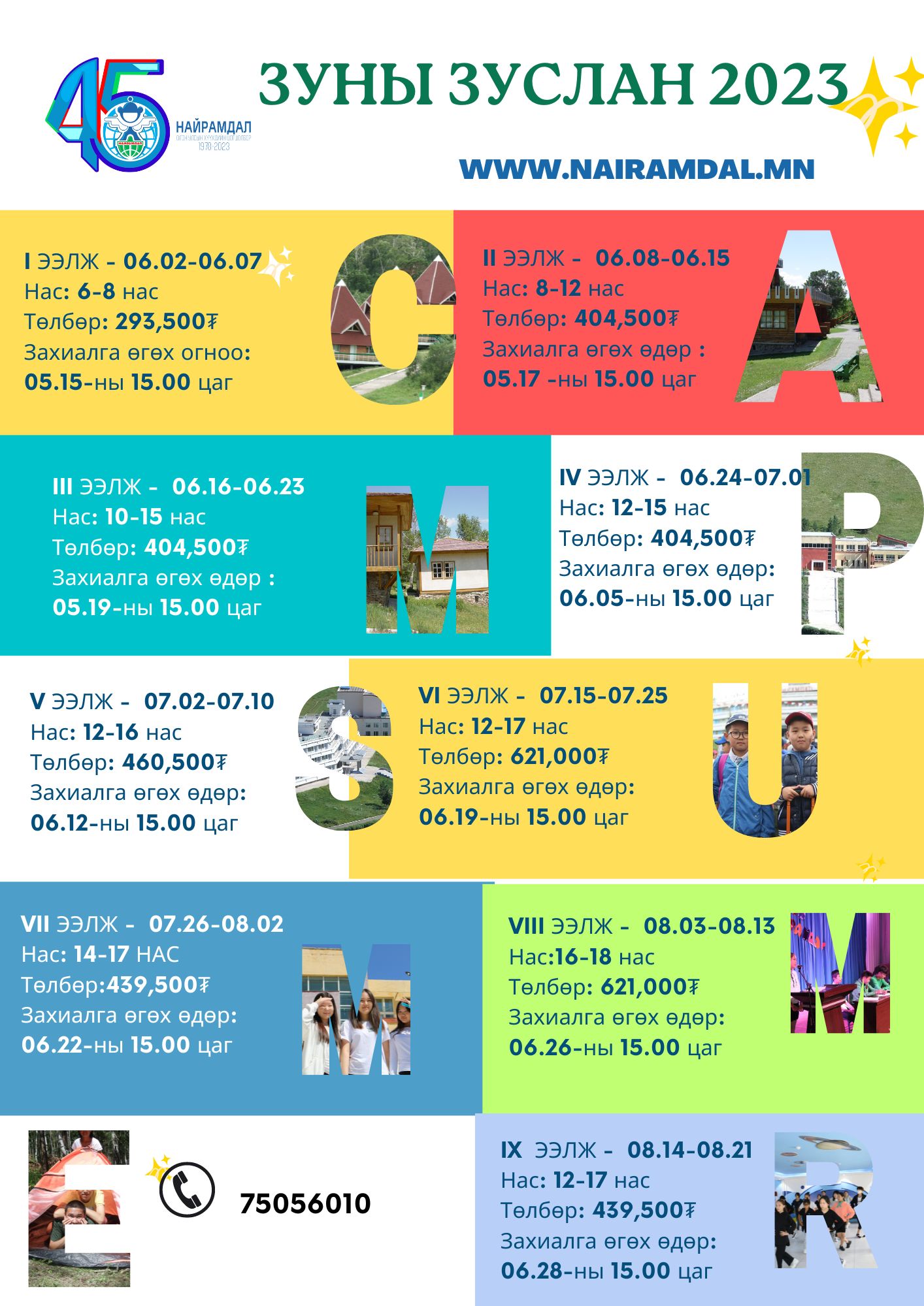 | Хүүхдийн зуслангийн ээлж насны ангиллаасаа хамаарч 260-720 мянган төгрөгийн үнэтэй байна |