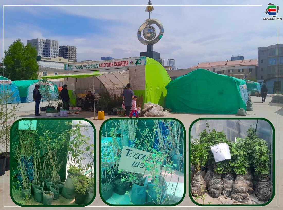 “Мод бут, сөөгийн суулгац, үр, үрслэгээний үзэсгэлэн худалдаа” гэх хулдаасан хэвлэл өлгөсөн ногоон, цэнхэр хүлэмжүүд Барилгачдын талбайг дүүргэжээ. Модны үрсэлгээ, мандлын цэцэг тариалдаг иргэд энд жил бүр үзэсгэлэн худалдаанд гардаг.