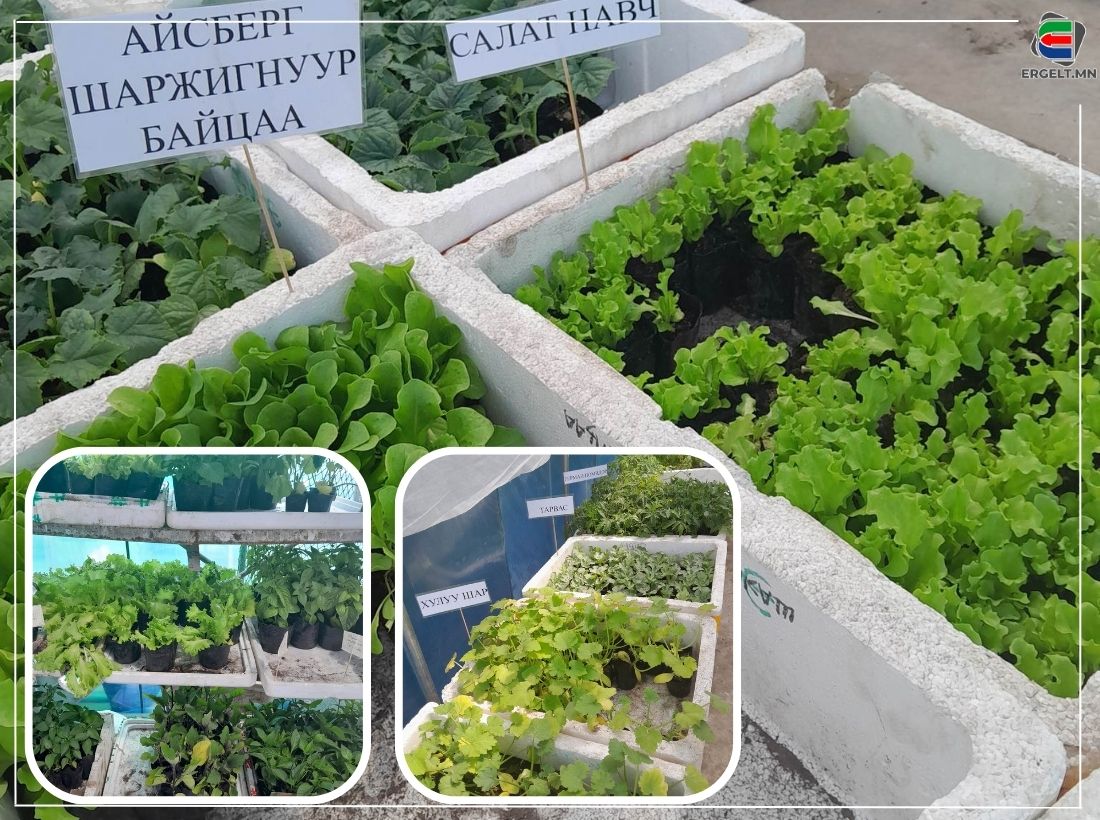 Хаяа нийлүүлэн байршсан хүлэмж бүр худалдан авагч, үйлчлүүлэгчидтэй байлаа. Хүлэмж бүрд зөвхөн модлог ургамлаас гадна, хүлэмжид тарих зориулалттай хүнсний ногооны үрсэлгээ, тасалгааны цэцэг, мод, ногоо тарихад хэрэглэх багаж, бордоо, үр, даршилсан ногоо, жимсний шүүс зэрэг байлаа. Барилагчдын талбайн урд хэсэгт бусдаасаа арай том хүлэмж байх бөгөөд энд төрөл бүрийн нарийн ногооны үрсэлгээ худалдана. Хүлэмжийн хоёр талаар болон газраар тавьсан үрслэгээний дунд огурцы, салатны навч, амтат чинжүү, байцаа, тарвас, хулуу, лооль зэрэг байна. Хүлэмж болон тасалгаанд тарих зориулалттай бөгөөд салатны навчийг хашаанд тарих боломжтой, арчилгаа бага шаарддаг учир иргэд сонирхож худалдаж авах нь элбэг байгаа аж. Хүмүүсийн ихээр худалдаж авч байгаа салатны навчны үрсэлгээ 500 төгрөг бөгөөд худалдагчид 4-5 ширхгээр нь авч тарьж үзэхийг зөвлөж байлаа.
