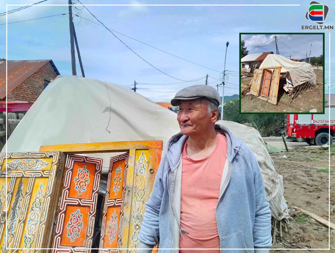 Хоёр багана нь тоонотойгоо л босоогоороо үлдсэн гэрийн урд нас дээр гарсан эр жижиг модон сандал дээр сүүдэр бараадан сууна. Гэртээ ганцаараа амьдардаг тэрбээр гэнэтийн үерээс болж хаалга нь гацаад золтой л гэртэйгээ үерт урсчхаагүй гэнэ. Тус хороонд нүүж ирээд жил гаруй болж буй Н.Доржсүрэн “Улаан шороо урсаад ороод ирсэн хаалга гацаад баларч байтал машинтай хүмүүс ирж хаалга онгойлгож өгсөн. Хашаанд байсан машин урсаад гараад явсан. Гэр бүтнээрээ урсаж байхыг хөгшин настай би анх удаа харлаа. Бичиг баримт ил байхаар нь аваад гарсан. Одоохондоо өөр хөрөнгөгүй л хоцорсон байна. Дотроо дүүрэн хүнтэй автобус манай урд талын төмөр хашааг нидрээд өнгөрсөн” гэв.