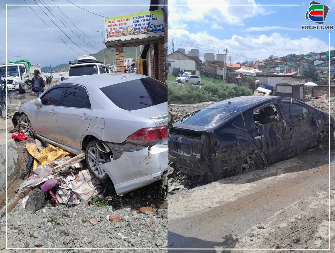Үерийн улмаас гудамж дагуу автомашинтайгаа урсаж буй иргэдийн талаар бид өмнө нь мэдээлээсэн. Зам чөлөөлөхийн тулд үерт урссан автомашинуудыг журмын хашаа руу шилжүүлж буй. Үерт автомашинтайгаа урссан Н.Бат-Амгалан “Гурван замын уулзвараас эхлээд уруудаад 500 орчим метр урссан. Гэнэт л үерийн ус орж ирээд хамаад аваад явчихсан. Урсгал дагаад эргэлдээд, энэ тэнд очиж юм мөргөөд их аймар. Нэлээн доошилж байгаад айлын хашаанд тулаад зогсоход нь машинаасаа гарч айлын байшингийн дээвэр бараадсан. Бүтэн үлдсэн юм байхгүй болсон учраас миний машин дахиж засвар авахгүй байх. Амьд гарсандаа баярлаж сууя даа” гэв.