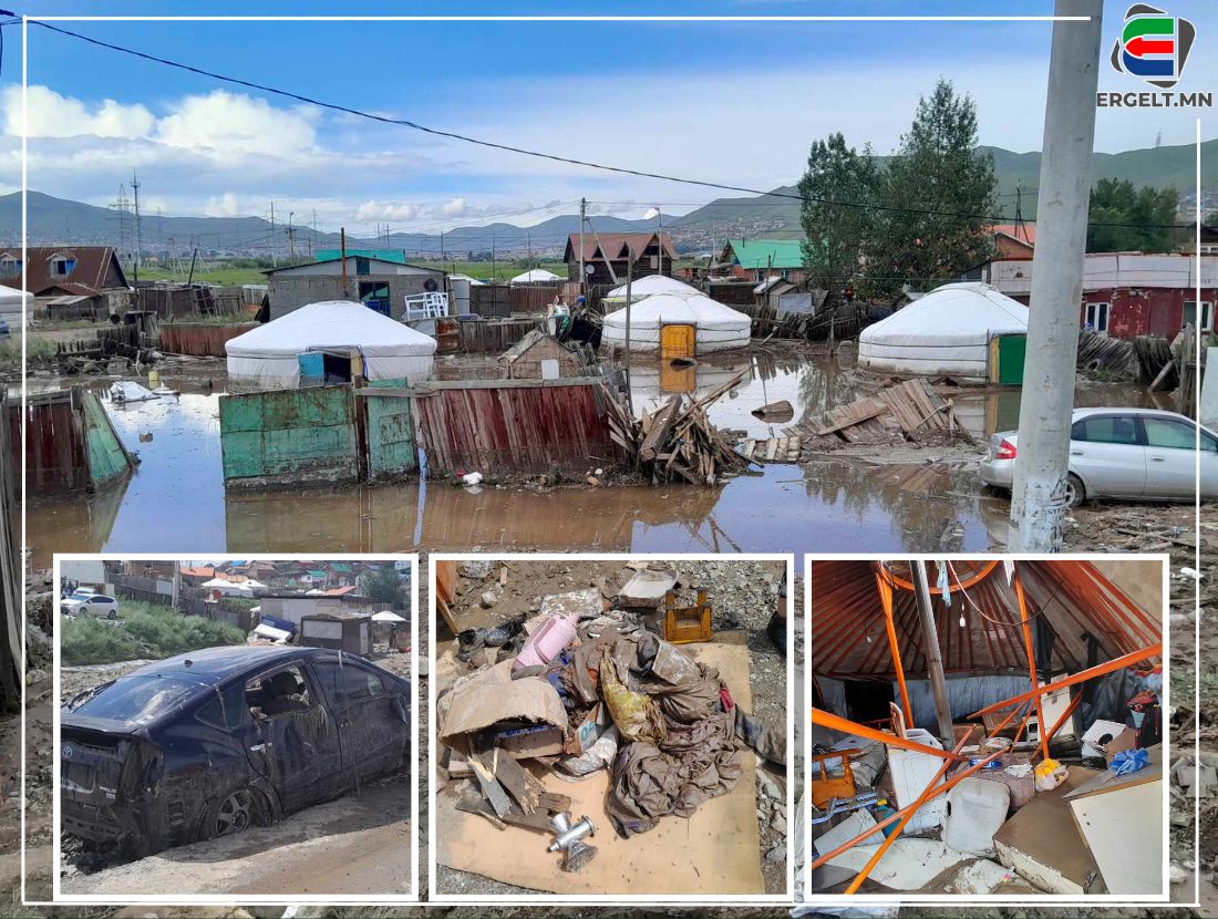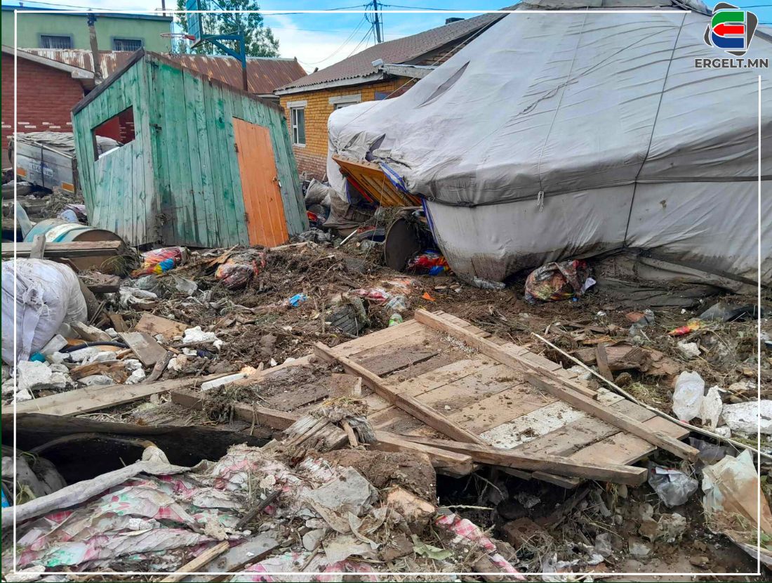 Үерийн улмаас хамаг айлын хашаа урсаад нурсан, нурах дөхсөн гэрүүд, энэ тэндээ цөм цохиулж эвдэрсэн автомашинууд л үлджээ. Иргэд ч манайх, танайх гэлгүй нэгэндээ тусалж, гэрээ цэвэрлээд завгүй байх нэгэндээ цай, ус дөхүүлнэ.