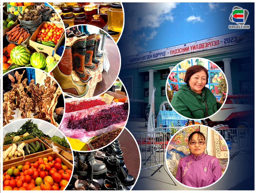 “Намрын ногоон өдрүүд үндэсний үйлдвэрлэл 2023” өдөрлөгт хүнсний бүтээгдэхүүн, жимс, ногоо, зөгий бал, зэрэг бүтээгдэхүүн үйлдвэрлэгчид оролцож буй. Мөн гар урлаач, оёдолчин, гуталчин зэрэг хөнгөн үйлдвэрлэл эрхлэгчид бүтээгдэхүүнээ дэлгэжээ.
