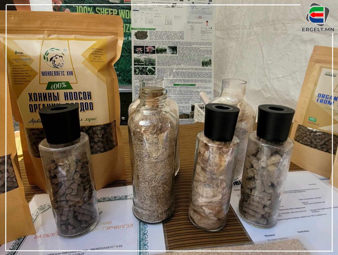 Үзэсгэлэн худалдааны онцлох бүтээгдэхүүний нэг нь Төв аймгийн “Монпеллетс” ХХК- ны хонины ноосон био бордоо байв.