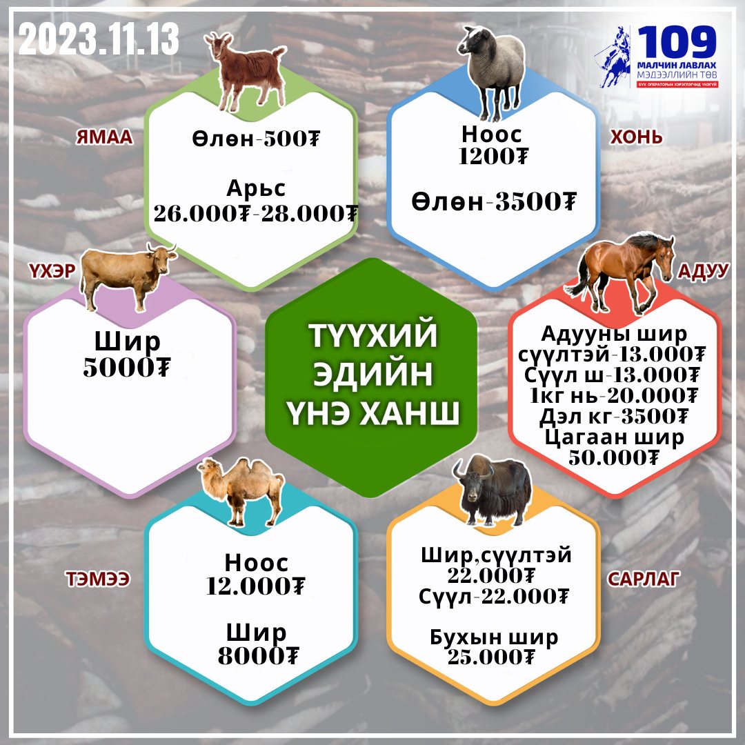 Мөн “Эмээлт” зах дээр түүхий эд худалдан авч, нийлүүлдэг болоод удаагүй байгаа Ченжээс арьс ширний үнийн талаар тодрууллаа. Тэрбээр саяхан өөрийн гэсэн худалдан авах цэг байгуулж, голлон бод малын арьс шир худалдаж аваад байгаа аж. “Манайх малын түүхий эд авдаг, амьдрах гээд ядаж байгаа жижиг газар. Хөдөөгийнхөн жижиг газар арьсаа худалдахаа байсан. Учир нь манайх шиг жижиг газрууд НӨАТ-ын баримт өгч чаддаггүй. Харин томоохон арьс, шир авдаг газар болон ченжүүд НӨАТ-ын баримт өгдөг болсон байна лээ. Гэхдээ бид байнгын малын гаралтай түүхий эд худалдан авч, цаашлаад үйлдвэрүүдэд нийлүүлдэг болсон. Бид үхрийн ширийг 5-25 мянга, сарлагийн шир 20000 мянган төгрөгөөр худалдан авч байгаа бол адууны арьсаа 25 мянган төгрөг гэсэн үнэтэй худалдан авч байна. Үхэр, адууны ширний үнэ хэвэндээ байгаа. Энэ жил зуд болох шинжтэй байгаа болохоор малчид малаа зарах нь ихэссэн” гэв.