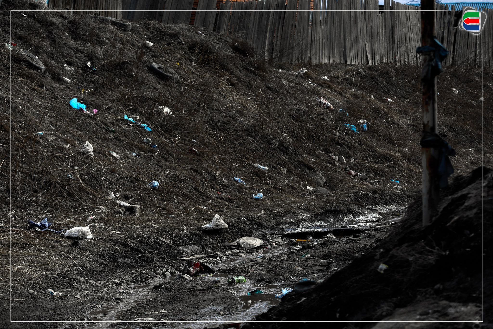 Баянзүрх дүүргийн 32 дугаар хорооны сүлжилдсэн олон гудамжны хөл хөдөлгөөн ихтэй хэсэгт ил хог харагдахгүй ч өмхий үнэртүүлсэн угаадас айлуудын хашаанаас урсана. “Угаадсаа гудамж руу битгий асгаад бай” гэхээр “Хашааны цас хайлж байна” гэх хэдхэн үгээр тэд аргацаагаад өнгөрөөдөг гэнэ. Гэтэл өнөөх хайлсан цас нь хөөсөрч, сааралтаад угаалгын нутаг эсвэл удаж, өмхийрсөн эхүүн үнэр үнэртэнэ. Автомашины замаас холдож, гудамж улам нарийсах тусам таралдах хог олон болно. Учир нь олдохгүй олон гудамжны дунд сагсан бөмбөгийн талбай сааралтаж, тоос, шавхайнд дарагдсан тоглоомын талбай угтлаа. Хүүхдүүд тоглодог гэхээсээ илүү томчуудын уулзаж, сархад ууж, тамхи татдаг газар гэдгийг нь хаа сайгүй хөглөрөх тамхины иш, шар айраг, архины шил харуулна. Талбайн арын айлын хашаанаас урссан угаадас хүүхдийн гулгуурын хажуу хүртэл урсана. Ингэж урсаад удсан гэдэг нь бусад хэсгээсээ илүү хонхойж, зам татсанаас нь илхэн харагдана. Тус хорооны дундуур шар усны үерээс сэргийлэх үеийн далан бий. Гэхдээ биднийг очиход үеийн далан бус хог, шавхайндаа дарагдсан жалга угтсан юм. Өнжмөл өвс нь цас, усны урсгалын дагуу налж, эргэн тойронд нь иргэдийнх нь хаясан хогоор дүүрчээ. Хажуухан талд нь худаг байх бөгөөд таван литрийн саваар усаа авсан эр өнөөх жалга уруудан, шавхай, хог туучин одлоо. Хайлсан цас, угаадас урссан энэ зам дагуу хоёр талынх нь айлуудын хашааны хаалга байрлана. Гэртээ тэд ялгадас, угаадас, хогтой замаар туучсан гуталтай ордог гэсэн үг. Жалга дагуу байрлах айлууд шөнөдөө хашаагаа давуулж ууттай хогоо шидэж, угаадсаа асгадаг гэнэ. Өвлийн турш нүднээсээ зайлуулж цацсан угаадас нь хөлдөж, халтиргаа үүсгэнэ.