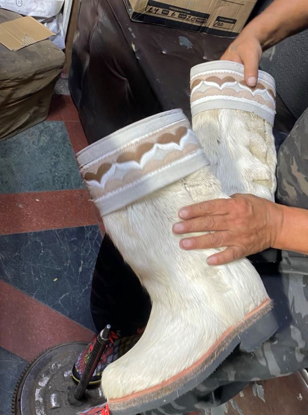 Өвөл болохоор бидний ажил ид эхэлдэг. Годон гутлын засварууд эхнээсээ орж ирж байна. Зундаа бол ажил багатай, хүмүүс углааш, сандаал өмсөөд эхлэхээр нэг их гутал оёулаад байдаггүй. Манайхан голцуу годон гутлаар дагнадаг. Гэхдээ засаж янзлах юу л байна, бүгдийг нь хийнэ. Хором, бакал, пүүз, кет гээд бүгдийг засна. Цүнх засна, савхи хүртэл будна. Ингэж байж л амьдарна шүү дээ.