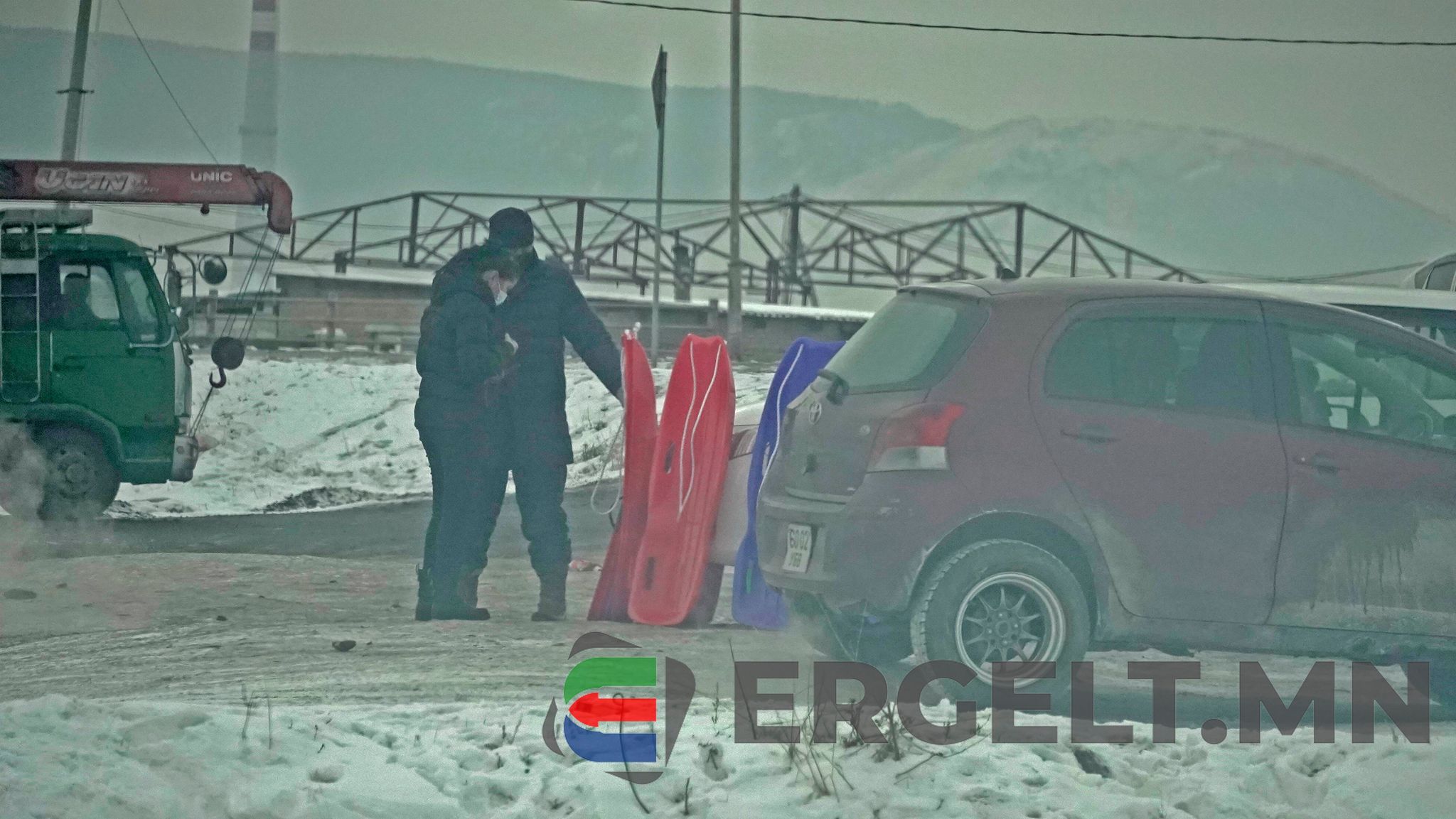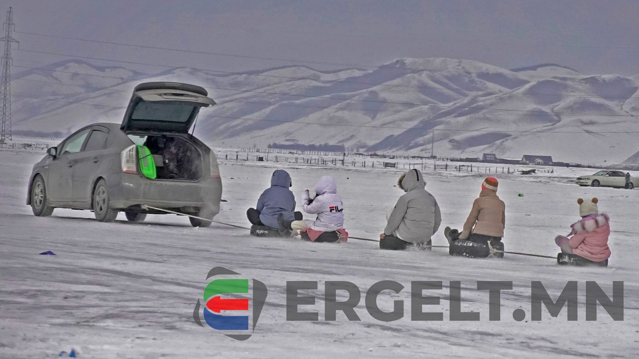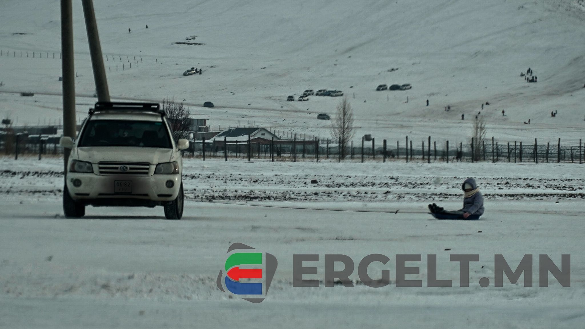 Улиастайн голын мөсөн дээр саарал өнгийн приус автомашины жолооч эхнэр, хүүхдээ машинаараа чирж, гулгуулж байхтай таарлаа. Эхнэрээ машины дугуйн дээр суулгачихсан, арав гаруй насны болов уу гэмээр хүүгээ хуванцар чарга “хөлөглүүлж”, таван нас хүрч байгаа болов уу гэмээр нялх охиноо ундны усны шар савыг хөндлөн тайрч, даавуугаар дотор нь зөөлөвч хийсэн “машин”-д суулгаж, тус бүрийг хооронд нь олсоор холбоод машиныхаа араас чиржээ. Голын мөсөн дээгүүр машиныхаа хурдаар давхиад байх. Бага охин нь уйлж, эхнэр нь “Яана үхлээ ш дээ. Ханиа зогсоорой, хүүхэд уналаа” гэж байдаг чангаараа хашхирч байгааг нөхөр нь сонсож байгаа шинж алга. Эргэн тойронд байсан хүмүүс гараараа зангаж, зогсохыг шаардаад ч нэмэр алга.