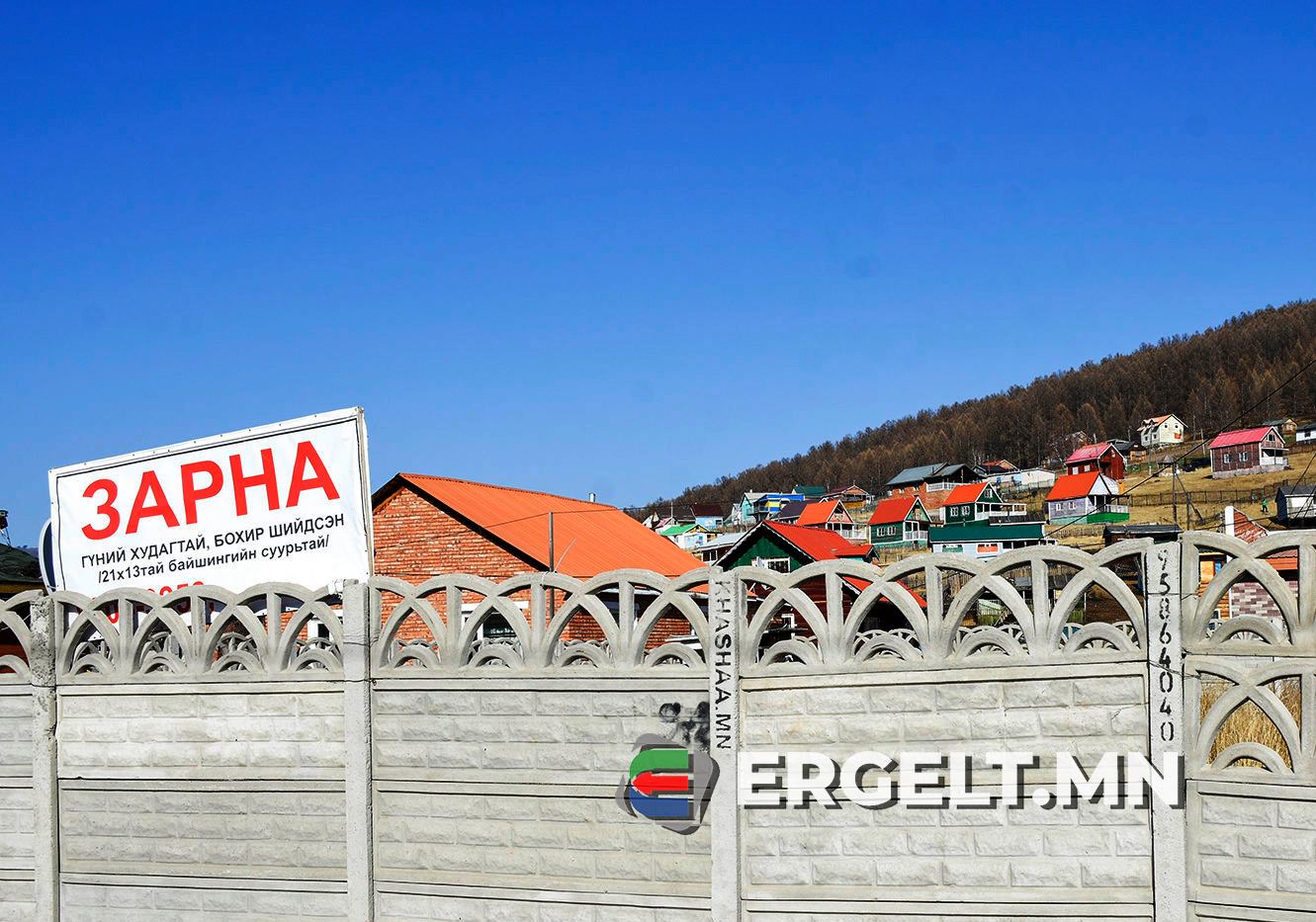 Үүнээс ганц ч уулын энгэр үлдээгүй гэлтэй, энэ тэндгүй эмх замбараагүй хашаа хатгаж, байшин барьж, айлууд төвхнөжээ. “Зарна” гэсэн зарын самбартай хашаа, байшин, хэдэн шон хатгаж, тусгаарласан зэлүүд газар уулын энгэрээр олон байх аж. 0.7 га хэмжээтэй газар байршил харгалзахгүйгээр хамгийн багадаа таван сая гэнэ.
