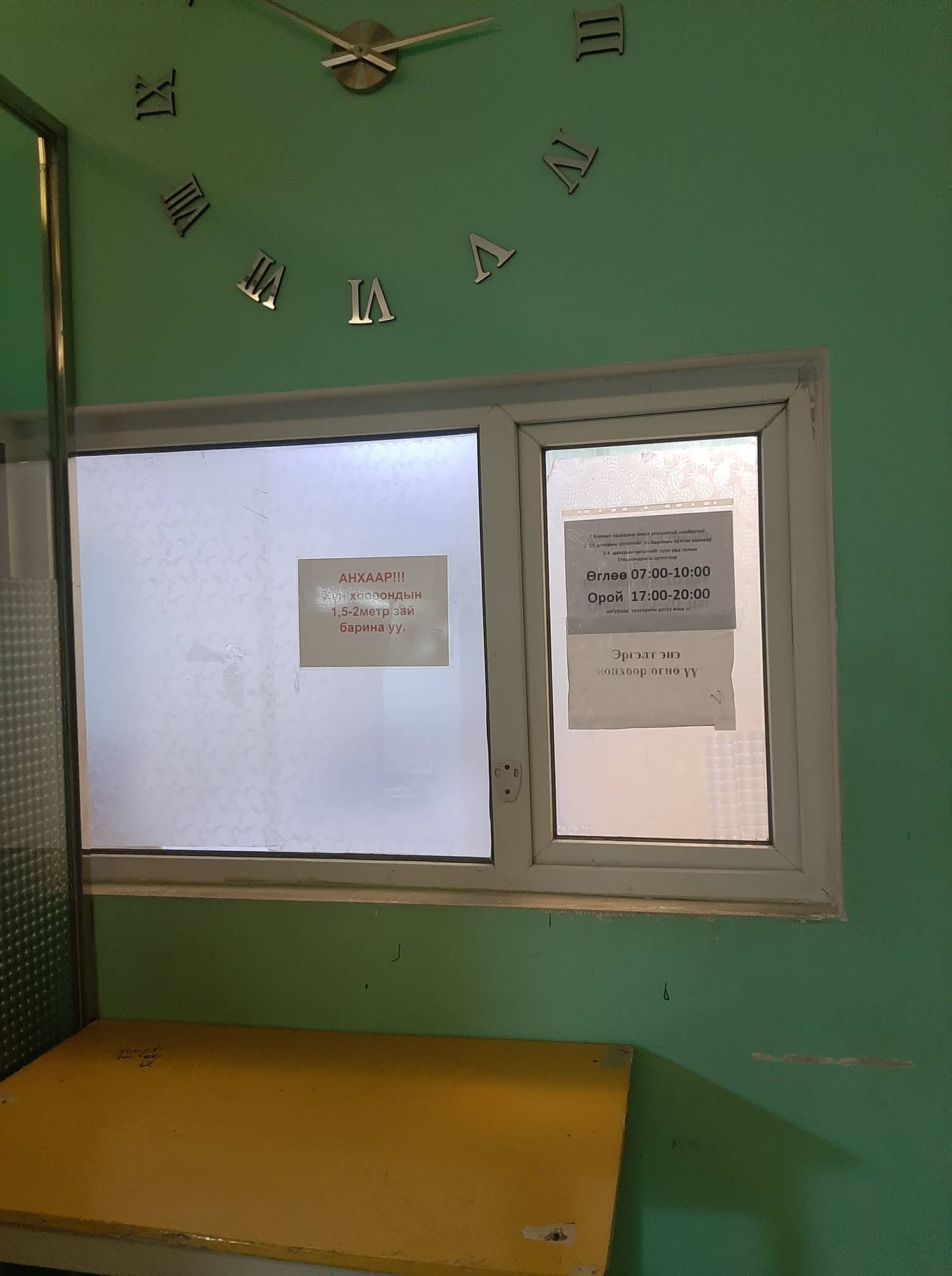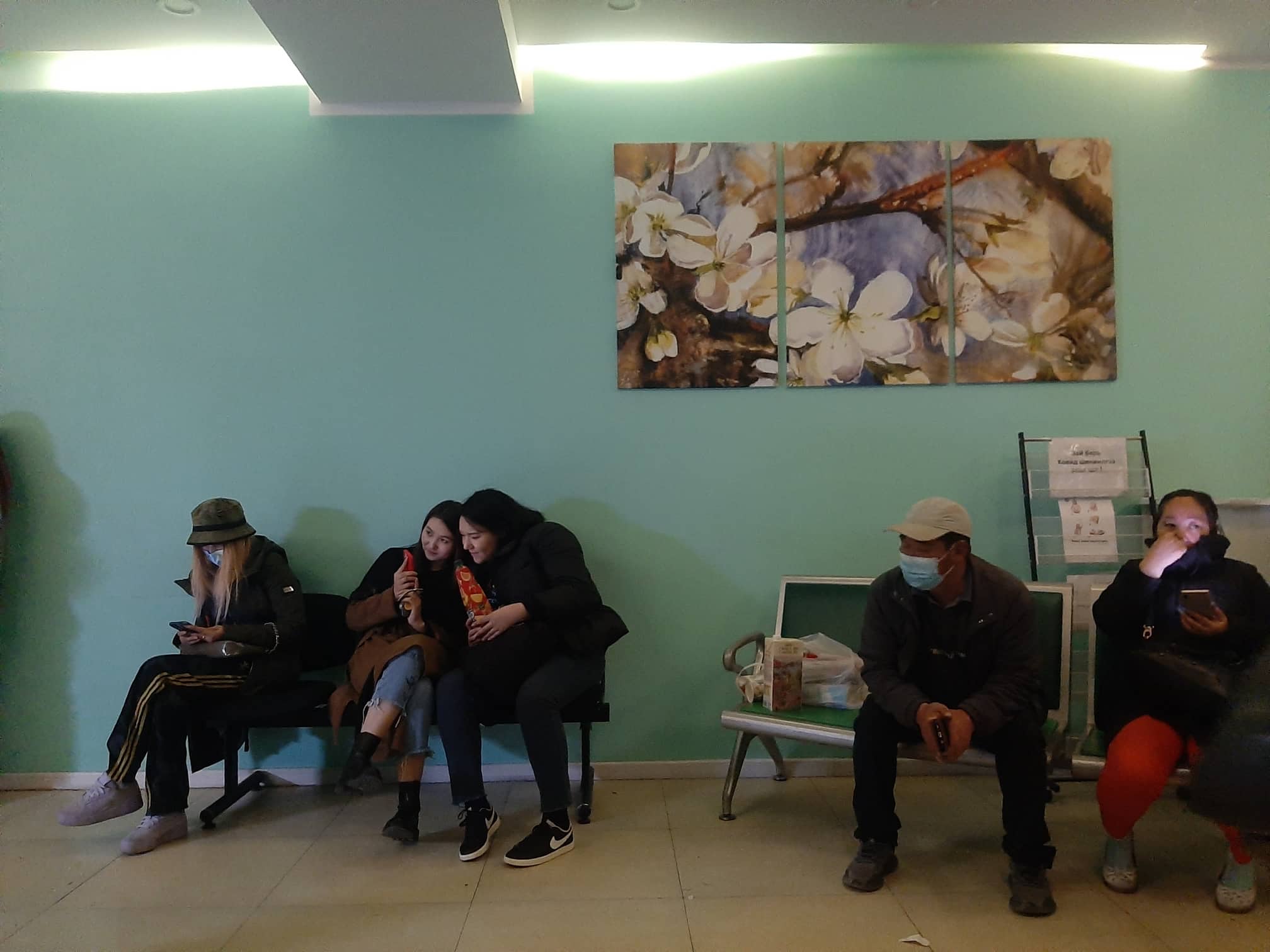 “Хүлээн авах” гэсэн бичигтэй хаалганы урдах авто зогсоол машинаар дүүрэн ажээ. Машин дотор хүлээлгийн өрөөнд багтаагүй гэр бүлийн гишүүд шинэ хүнээ хүлээцгээнэ. Эмнэлгийн хаалгаар ороход хана дагуулан тавьсан хүлээлгийн сандал дээр иргэд сууцгаана. Үе үехэн эргэлт авах цонх онгойж, сувилагч бүсгүй хоол, хүүхдийн живх, унтлагын хувцас зэргийг хүлээн авч хүргэж өгөх хүнийхээ нэрийг, өрөөнийх нь дугаартай сайтар асууж лавлана. Зарим иргэнтэй хэдийнээ танил болж “Танай хоёр дажгүй байгаа, энэ нөгөө захисан зүйл нь биз дээ” гэсээр хэсэгхэн хөөрөлдөөд амжина. Өрөөнд ач зээгээ хүлээх буурайгаас эхлээд удахгүй төрөх дүү, эмнэлэгт хэвтсэн ээждээ санаа зовсон бяцхан хүү ааваасаа “Та ээжтэй ярьсан уу. Дүү төрсөн гэнэ үү” хэмээн лавласаар сууна. Аяны цүнх үүрсэн залуу хэдэн тийш холхиж хааяахан “Эх барих тасаг” гэсэн хаягтай хаалган дээр очиж өрөөнөөс гарч ирсэн сувилагч бүсгүйд цүнхнээсээ ууттай зүйл гаргаж өгөхдөө цаана нь болж байгаа үйл явдлыг харах гэсэндээ сувилагчийг давуулан цааш өнгийнө.