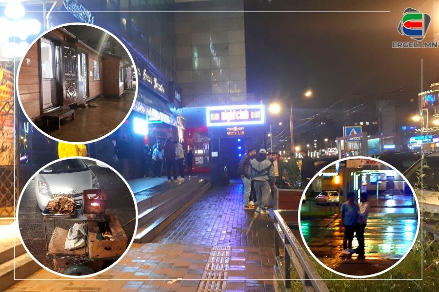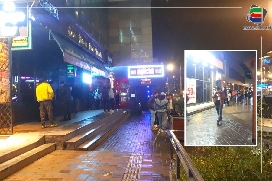 Москва ресторанаас цаашаа хэсэг алхаад дахин нэг клуб байх бөгөөд гадаа нь бөөгнөрсөн олон дундаас “Чи намайг мөрлөдөг хэн юм бэ. Алив хүрээд ир. Чи чадахгүй л дээ” гэсээр халамцуу хоёр залуу нэгэн рүүгээ дайрч, хамт яваа залуус нь салгах гэж дундуур нь орцгооно. Харин холгүйхэн “Уусан юмаа шингээж чадахгүй байж яах гэж ингэж их уудаг юм. Харьцгаая, бос л доо” хэмээн өөрийгөө хянах чадваргүй болтолоо архи уусан охиныг найз нь дагуулж явах гэж чангаах аж. Бараг ухаангүй шахам суух охин “Би согтоогүй, одоохон бослоо” гэж агсамнана. Хажуугаар явах залуус гартаа тус бүр нэг пивотой. Барьсан пиво нь дуусвал базаад газар шиднэ. Ингэж цувуулж хаясан пивоны лааз зам дагуу хэдэнтээ харагдана. Клубийн наана шорлог зарах эмэгтэй галд гараа ээсээр хэд хэд үрэн дулаацан. Баарнаас гарах согтуу залууст хамаг юмаа шидүүлэхгүй гэсэндээ шорлог худалдан авах хүмүүстэйгээ ихэд эвтэйхэн харицаж байлаа. “Баарны хажууд зогсвол худалдан авагч олонтой байдаг юм. Гэхдээ согтуу хүн хэцүү шүү дээ. Нэг агсам зан нь хөдөлчихвөл хамаг юмыг минь авч шидээд сүйд хийнэ. Ялангуяа энэ залуусын уур омог гэж жигтэйхэн их. Өнгөрсөн долоо хоногт нэг залуу миний шорлог амтгүй байна гээд найзуудтай нийлж бэлэн байсан шорлогыг минь хэдэн тийш цацаж, тэрэг эвдлэх шахсан. Азаар хажуугаар зөрж явсан хүмүүс тус болсон. Шөнийн цагаар эрүүл хүн бараг л явахгүй дээ” гэв. Тэрбээр шорлогоо ширхгийг нь 5000 төгрөгөөр зарж байгаа гэнэ.