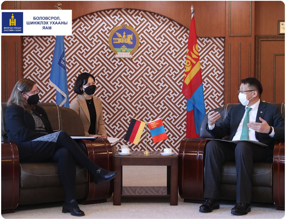 Уулзалтаар Монгол-Германы боловсролын салбарын хамтын ажиллагаа, Монгол-Германы хамтарсан ашигт малтмал, технологийн их сургуулийн статусын талаар нухацтай ярилцаж, мэргэжлийн боловсрол олгох Мастерийн хөтөлбөр эхлүүлэх зэрэг асуудлаар санал солилцов.