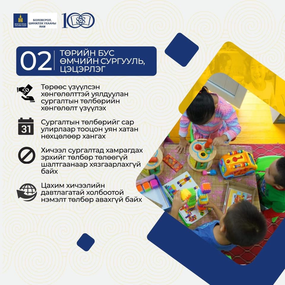 | Өмчийн хэлбэр харгалзахгүй бүх шатны сургалтын байгууллага төлбөрөө хөнгөлөх журам баталлаа |