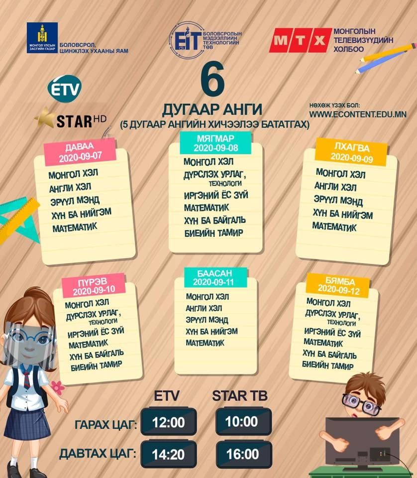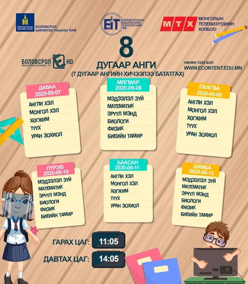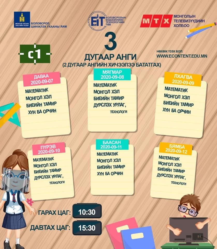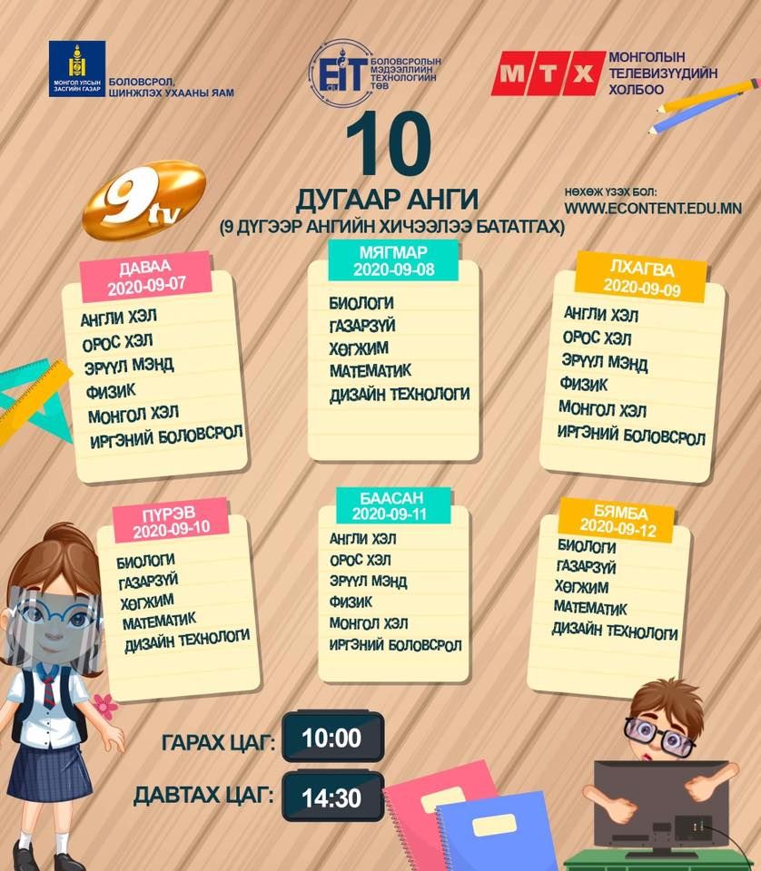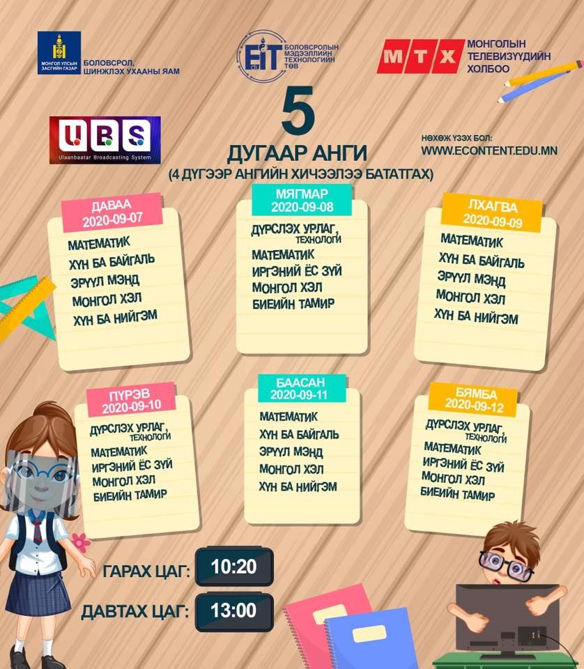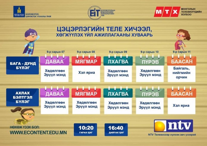 | Энэ долоо хоногийн теле хичээлийн хуваарь |