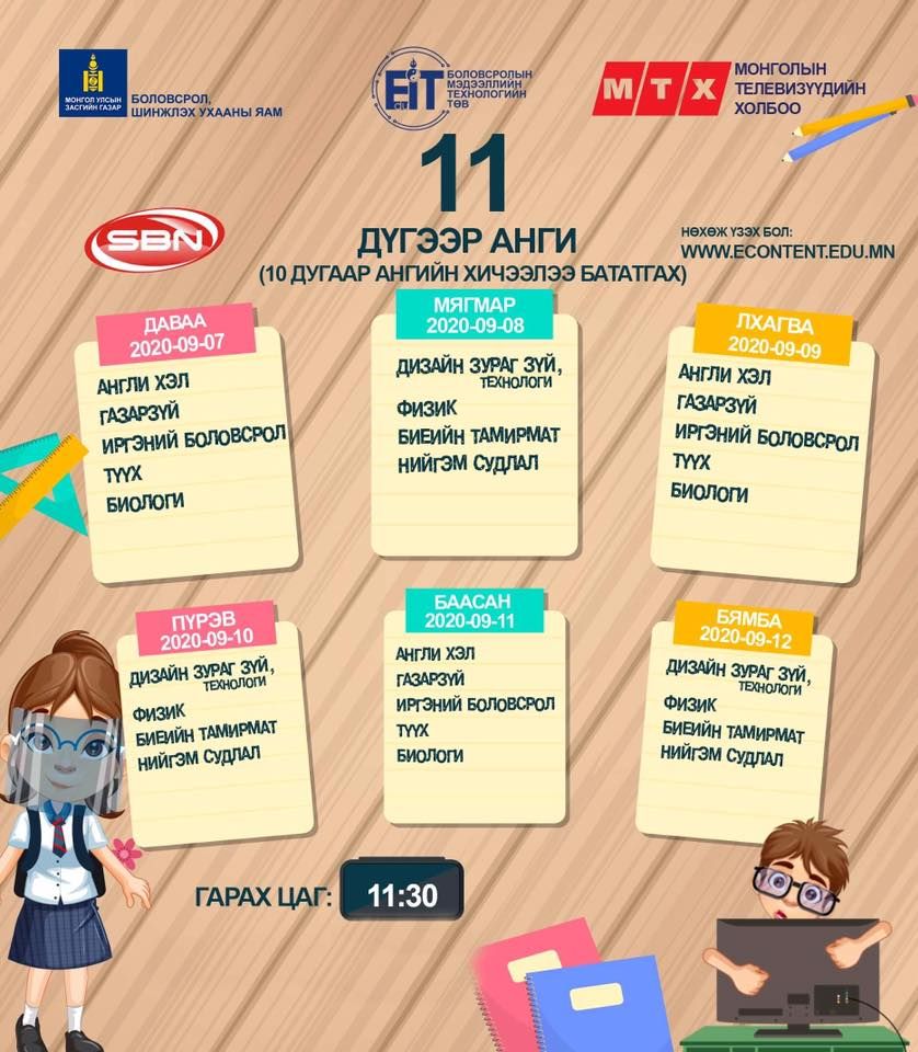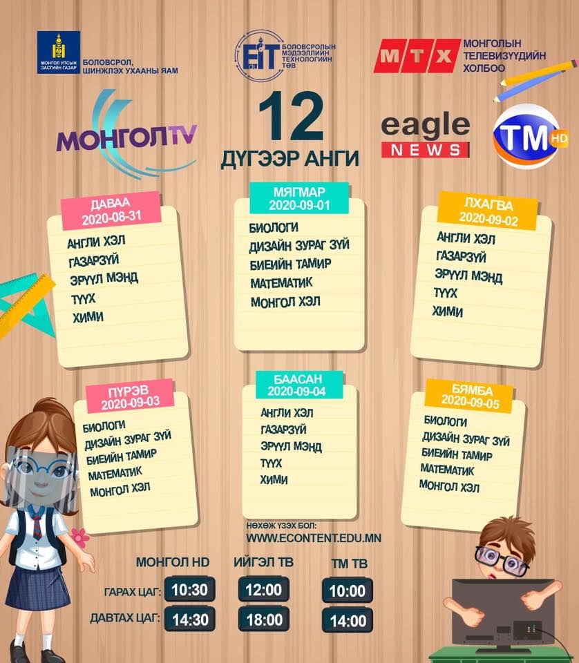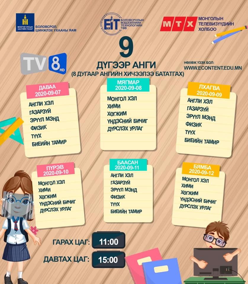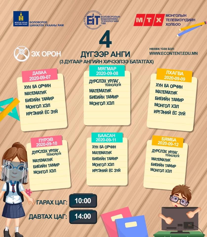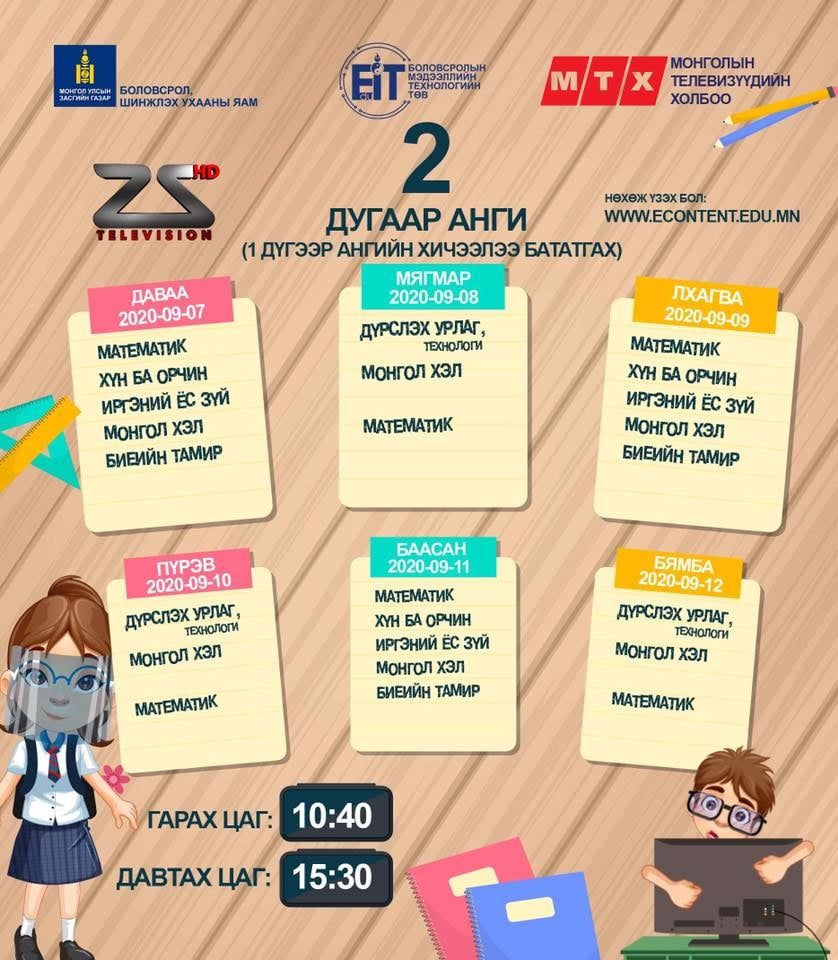 | Энэ долоо хоногийн теле хичээлийн хуваарь |