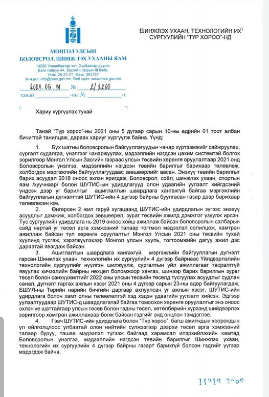 Олон нийтийн сүлжээгээр "Салбараа хүлээн зөвшөөрдөггүй сайд их, дээд сургуулиудыг хааж эхнээс нь нураахыг зэхэж байна" гэдэг төлбөрт нийтлэл “бай”-гаа оноогүй гэдгийг хэлье.