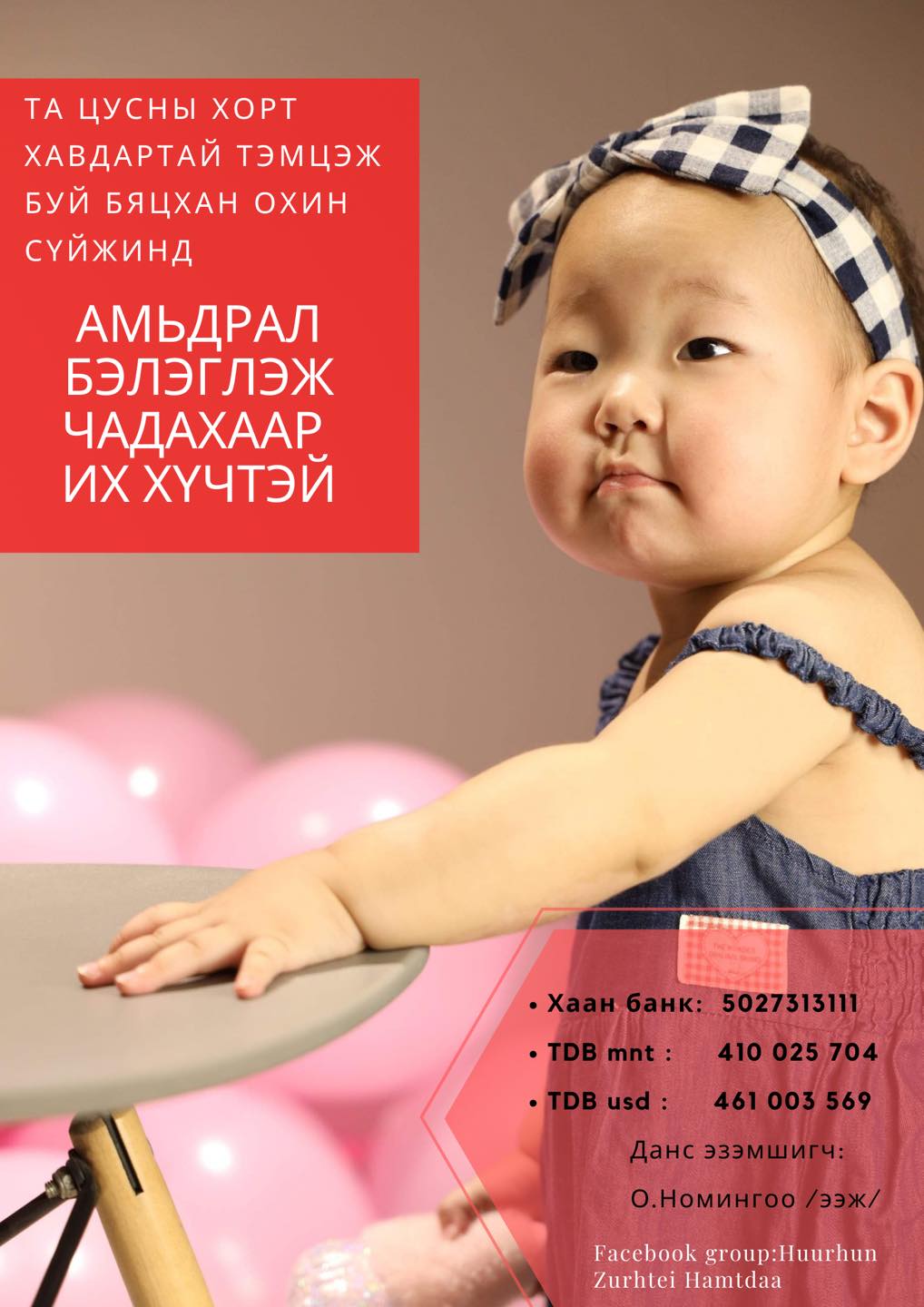 “Хөөрхөн зүрхтэй хамтдаа” аянд нэгдэж, Э.Сүйжин охиныг эрүүл, энх болоход хандив өргөж, сэтгэлээрээ дэмжээрэй хэмээн уншигчдадаа ч мөн уриалъя.