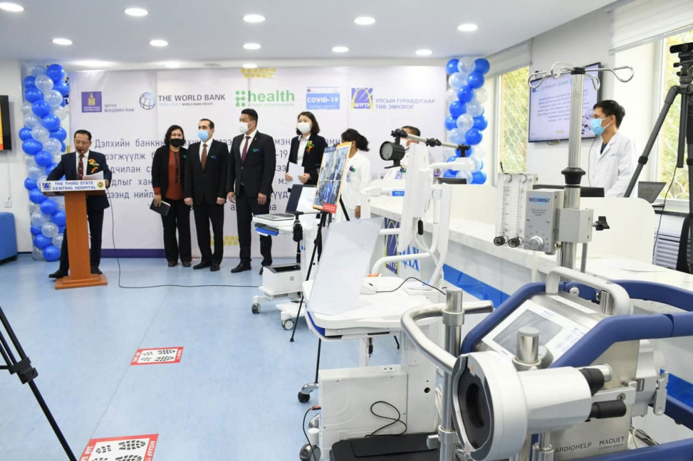 Эрүүл мэндийн яам нь Дэлхийн банкны санхүүжилтээр “Монгол Улсын “Ковид-19”-өөс урьдчилан сэргийлэх, хариу арга хэмжээ авах, бэлэн байдлыг хангах” төслийг 2020 оны дөрөвдүгээр сараас хэрэгжүүлж байна. Тус төслийн санхүүжилтээр УГТЭ-т 2.9 cая ам.долларын (найман тэрбум 380 сая төгрөгний) төсөвт өртөгтэйгээр, Уушги орлуулах ЭКМО, 30 гаруй нэр төрлийн Яаралтай тусламж, сэхээн амьдруулах тасгийн тоног төхөөрөмжийн иж бүрдэл, Оношлогооны дурангийн иж бүрдэл, зөөврийн рентген аппарат зэрэг тоног төхөөрөмжийг өнөөдөр хүлээлгэн өглөө. Уг үйл ажиллагаанд Эрүүл мэндийн сайд С.Энхболд, ЭМЯ-ны удирдлагууд, Дэлхийн банкны суурин төлөөлөгч Андрей Михнев тэргүүтэй төлөөллүүд, Улсын гуравдугаар төв эмнэлгийн удирдлага, хамт олны төлөөллүүд оролцлоо. Улсын Гуравдугаар Төв Эмнэлэгт мөн Дэлхийн банкны санхүүжилттэй ЭМЯ-ны хэрэгжүүлж буй “Цахим эрүүл мэнд” төсөл 2020 оноос хэрэгжээд байгаа бөгөөд Дүрс архивлах дамжуулах системийг суурилуулан амжилттай хэрэгжүүлж буй билээ.