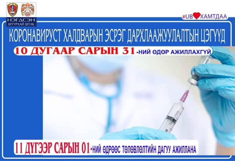 | Өнөөдөр дархлаажуулалтын цэгүүд ажиллахгүй |