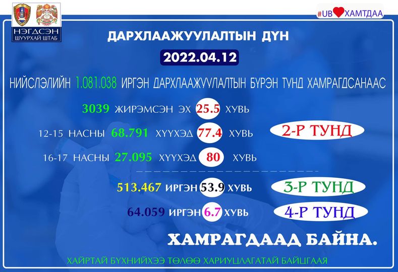 | Улаанбаатарт 64 мянган иргэн вакцины дөрөвдүгээр тунд хамрагджээ |