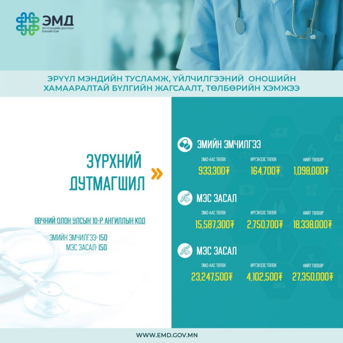 | Зүрхний дутмагшлын тусламж, үйлчилгээний 85 хувийг ЭМД-ын сангаас хөнгөлнө |