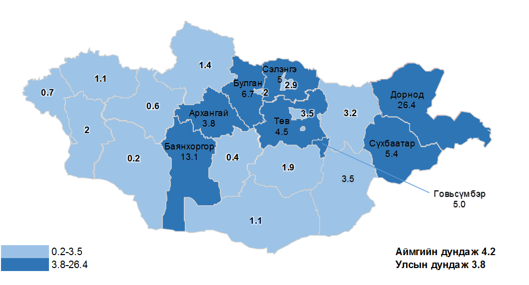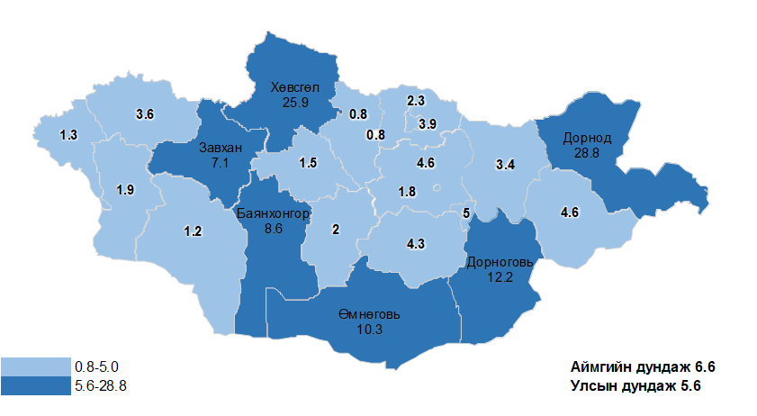 Заг хүйтний 1944 тохиолдол бүртгэгдсэн ба өнгөрсөн онтой харьцуулахад 2.7%-иар буурсан, ба 10,000 хүн амд ногдох тэмбүүгийн өвчлөл Баянхонгор 8.6, Дорноговь 12.2, Дорнод 28.8, Завхан 7.1, Өмнөговь 10.3, Хөвсгөл 25.9 аймгууд улсын дундаж 5.6 хувиар өндөр байна.