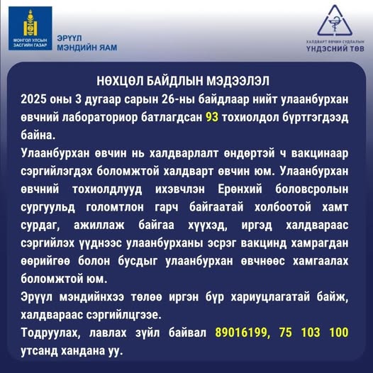 | Улаанбурхан өвчний 93 тохиолдлыг бүртгэжээ |
