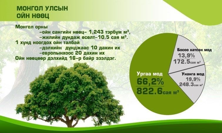 Манай улсын ойн сан бүхий газар 18.5 сая.га буюу нийт нутаг дэвсгэрийн 11.8 хувийг эзэлдэг байна. Үүнээс 12.3 сая га нь ойгоор бүрхэгдсэн хэвийн ургаж байгаа аж. Салбарын судлаачид Монгол орны хамгийн хөгшин мод Завхан аймгийн Их-Уул сумын нутагт байгааг тогтоожээ. Тус мод нь 700 гаруй жилийн настай, 1.8 метр бүдүүн шинэс мод юм байна.
