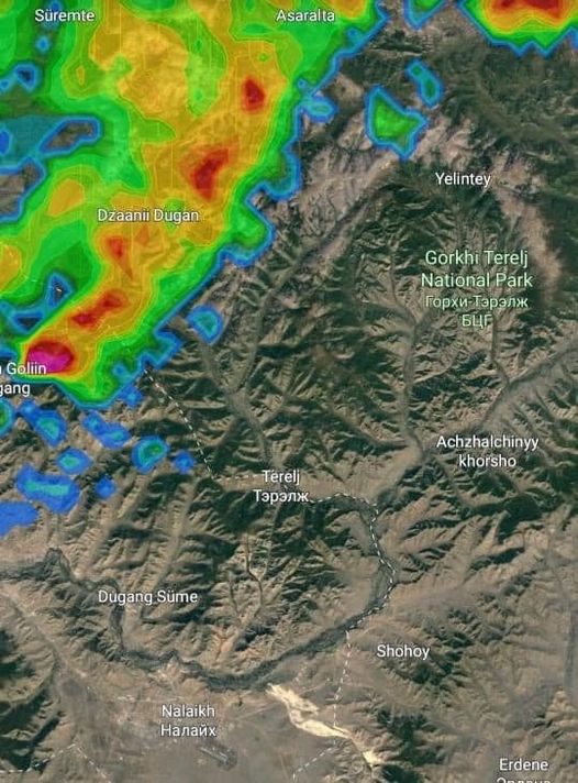 | СЭРЭМЖЛҮҮЛЭГ: Горхи Тэрэлж орчмоор 10-20 минутын дараа хүчтэй аадар бороо орно |