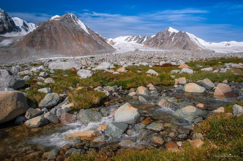Улаанбаатар хотоос гарах үед “Баян-Өлгий аймаг тэр чигтээ усанд автчихсан байна гэнэ. Аймгийн төвийн айлуудын хашаа, байшин гэрийг уулын эрчилсэн их үерийн ус тэр чигт нь хуу хамаад аваад явчихжээ. Орох орон ч үгүй, оочих аягагүй болсон иргэд аймгийнхаа төвийн талбай дээр яах учраа олохгүй, зогсож байна” гээд л хэвлэл мэдээллийн хэрэгслээр сүртэй мэдээлэл цацагдаж байв. Биднийг очиход тэнгэр бүртийх ч үүлгүй цэлмэж, халуун нар шарах ажээ. Өлгий хотын төвөөр урсах Ховд гол улаанаараа эргэлдэж, саваа халин цовхчин шуугих ажгуу. “Үер болоод айл өрхүүд гэр оронгүй баларч байгаа гэсэн. Улаан Загалмайн тусламжийн цуваа наашаа гарсан гэнэ” гээд л жолооч залуутай хөөрөлдөж гарлаа.
