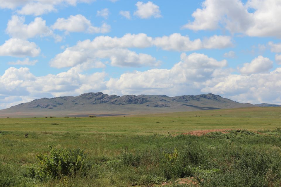 Энэ их талд шивээ өвс их ургасан харагдана. Их талын айзмыг зүсэн яваа автобусанд найрагчид дуулалдсаар, инээлдсээр. Шаргалтан байх хээр талд таван хошуу мал идээшиж, малчин залуус дээлээ сугалдаргалаад хятад мотоциклынхоо хаазыг нэмэн тоос манаруулан давхиж яваа харагдана. Баянталаас Дархан сум руу салж хоёроос гурван километр яваад зогслоо. Энэ нутгийн чулуу их өвөрмөц ажээ. Цагаан будаа шиг жижиг, жижиг ширхгээр тархсан байх юм. Шивээ өвс хатгаж, мангир, гогд үнэртсэн энэ газар бид цайлсан билээ. Зөөлөн салхи хацар илбэж, алаг далавчаа гайхуулсан хоёр эрвээхэй наран зөрөгт ниссэн, алтан чогчиго хашхираад тун ч чиг сайхан байлаа. Алсад торойх толгод зэрэглээтэн, хөх униар татанхан байлаа. Бид эндээс Хэнтий аймгийн Дархан суманд орших Шар нохойтын бууцанд очихоор хөдөллөө.