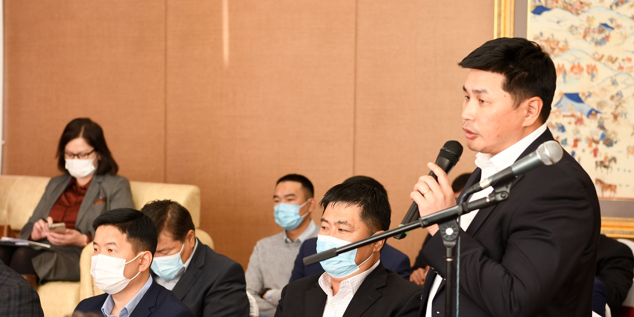 Нийслэлийн Засаг дарга бөгөөд Улаанбаатар хотын Захирагч Д.Сумъяабазар уулзалтыг нээж “Ковид-19” цар тахалд барилгын салбар хамгийн их өртсөн. Энэ цаг үед та бүхэнтэй ярилцаж, тулгарч буй асуудлыг сонсох нь нэн чухал. УИХ-д Улаанбаатар хотын хөгжлийн бодлого эрхэлсэн Түр хороог анх удаа байгуулсан. Хувийн хэвшлийн байгууллагууд хот, суурин газрыг дахин хөгжүүлэх тухай хуульд оролцох, өөрсдийн дуу хоолойгоо хүргэх хэрэгтэй. Аж ахуйн нэгжүүдэд тулгарч буй асуудлыг шийдэх үүднээс цахим системд шилжих, хууль эрх зүйн орчныг боловсронгуй болгох, төрийн хүнд суртлыг багасгах, авлига хээл хахуульгүй болгох механизмтай болохоор ажиллаж байна” гэв.