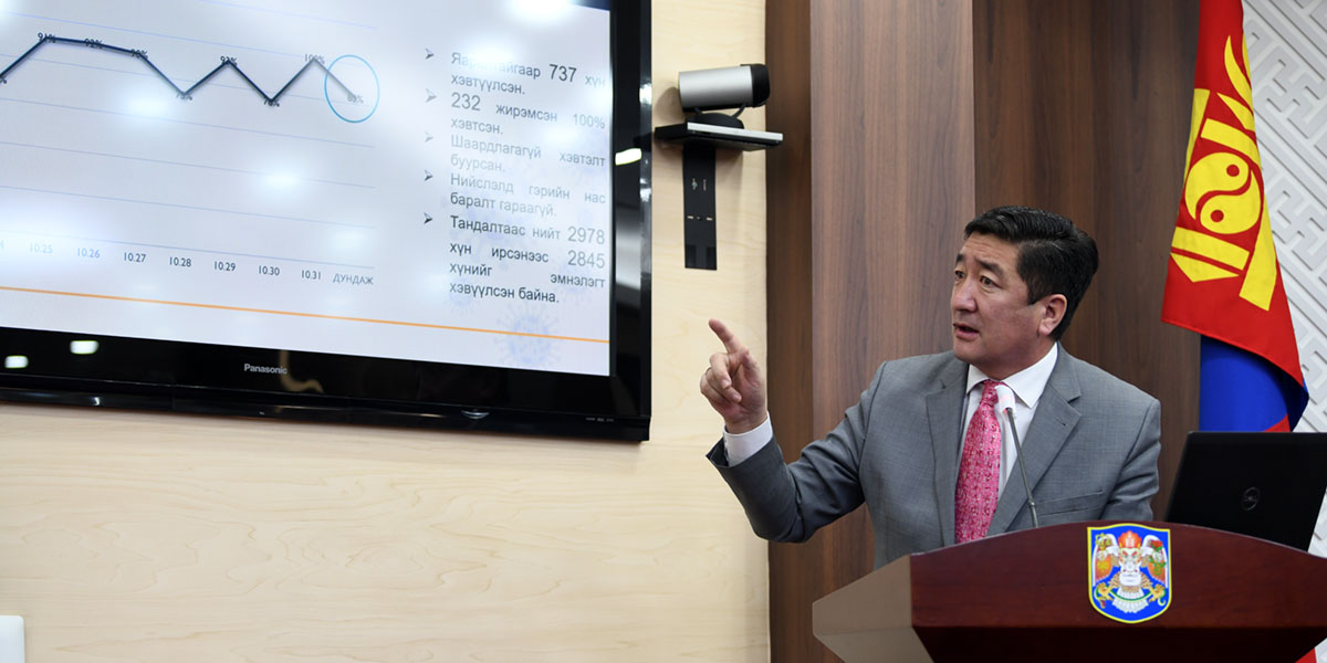 Нийслэлийн Засаг дарга бөгөөд Улаанбаатар хотын Захирагч Д.Сумъяабазар 11 үүрэг, даалгавар өгснөөс 73 хувийн биелэлттэй хэрэгжжээ. Коронавируст халдварын тархалтыг бууруулах арга хэмжээг эрчимжүүлж, аж ахуй нэгжүүдтэй “Хариуцлагын гэрээ” байгуулсан. Тус гэрээний биелэлтэд хяналт тавих, халдвар хамгааллын дэглэмийг сахиулахаар нийт 875 аж ахуй нэгж, байгууллагад шалгалт хийлээ. Шалгалтаар 146 зөрчил илрүүлсэн бөгөөд 96 зөрчлийг газар дээр нь арилгуулсан байна. Мөн 11 аж ахуй нэгжид холбогдох 50 зөрчлийг арилгуулахаар хугацаатай үүрэг даалгавар өгч, зургаан аж ахуй нэгжид зөрчлийн хэрэг нээлээ. Аж ахуйн нэгжүүдэд хариуцлага хүлээлгэх гэхээсээ илүү аль болох зөвлөн туслах, дэмжиж ажиллахыг Хотын дарга үүрэг болгосон юм.