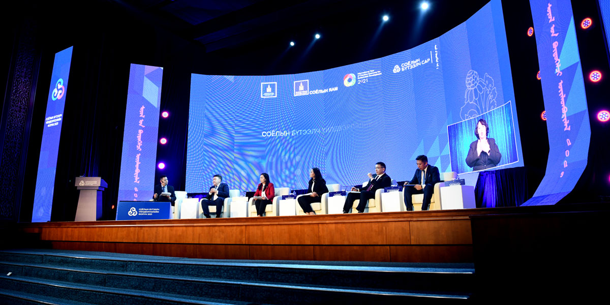 Монгол Улсын Ерөнхийлөгчийн ивээл дор зохион байгуулж байгаа “Соёлын бүтээлч үйлдвэрлэл” үндэсний форум өнөөдөр боллоо. Форумын “Соёлын бүтээлч үйлдвэрлэлийн хөгжлийн бодлого” хэлэлцүүлгийн зохицуулагчаар Ерөнхийлөгчийн Соёл, шашны бодлогын зөвлөх Д.Бум-Очир ажиллаж, УИХ-ын гишүүн Х.Булгантуяа, Нийслэлийн Засаг дарга бөгөөд Улаанбаатар хотын Захирагч Д. Сумъяабазар, Соёлын сайд Ч.Номин, Сангийн сайд Б.Жавхлан, Үндэсний хөгжлийн газрын дарга Х.Батжаргал нар оролцсон юм.