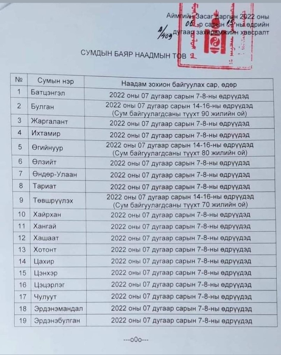 | ТАНИЛЦ: АРХАНГАЙ АЙМГИЙН СУМДЫН НААДМЫН ТОВ |