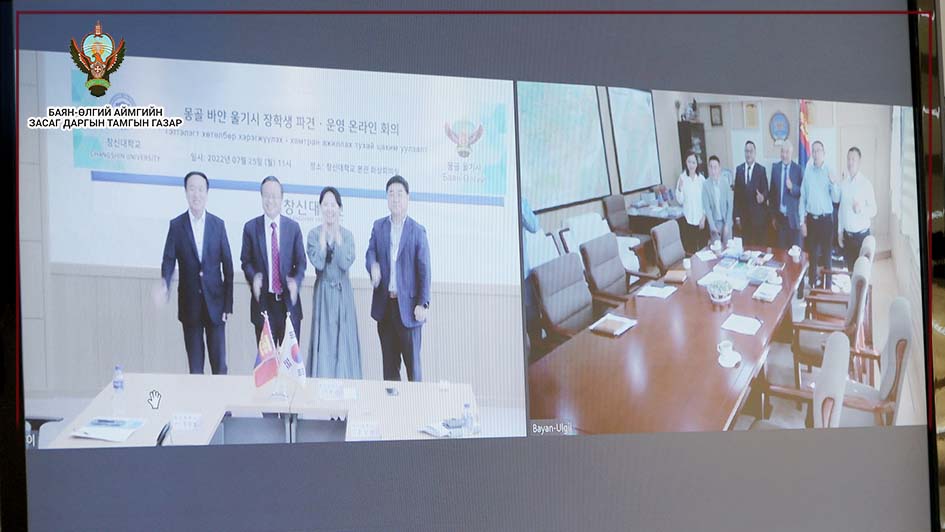 | Баян-Өлгий аймгийн Засаг дарга БНСУ-ын Чангшин их сургуулийн удирдлагуудтай цахим уулзалт хийжээ |