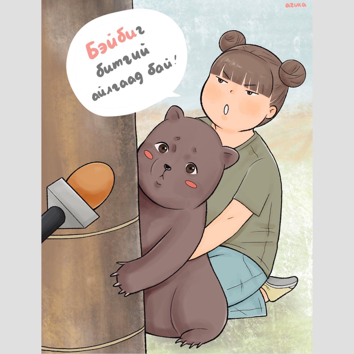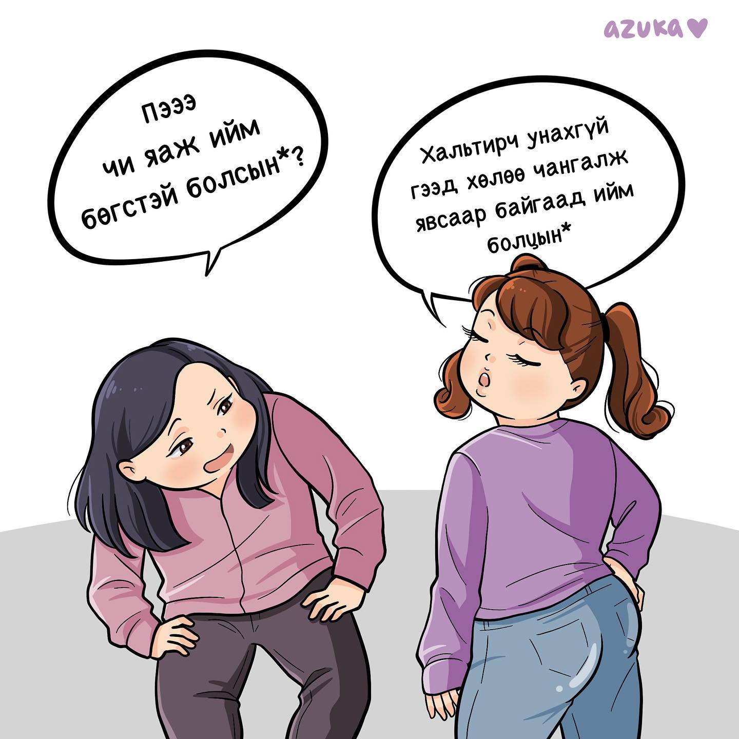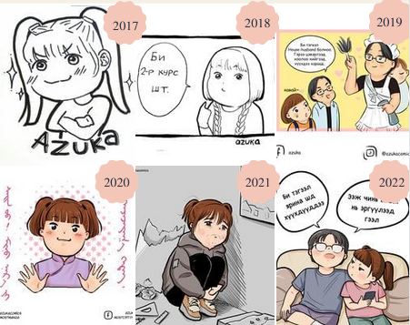 -Сайн уу, Намайг А.Аззаяа гэдэг. Чөлөөт цагаараа зурагт ном зурж “Азука” цахим хуудсанд нийтэлдэг.