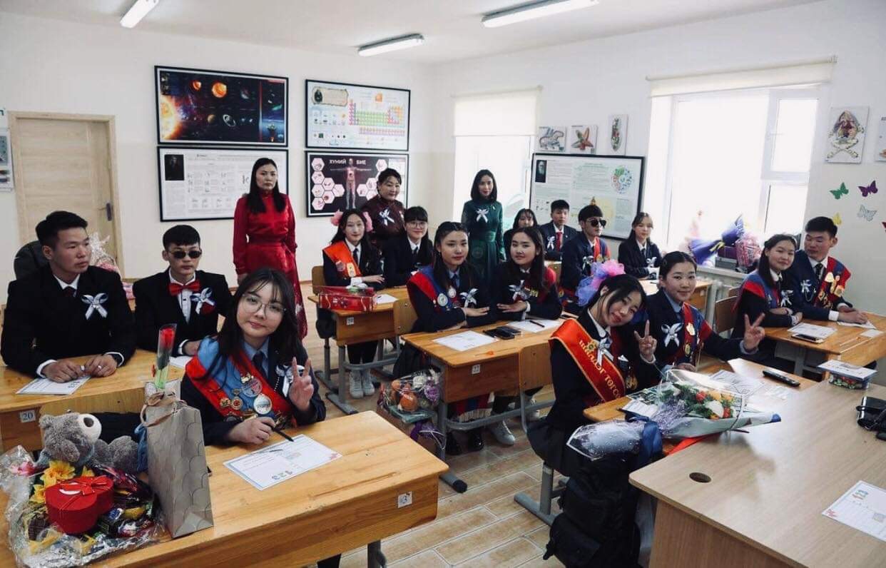 Дундговь аймгийн Дэлгэрхангай сумын сургуулийн арванхоёрдугаар ангийн сурагчдын ангидаа ЭЕШ-д бэлдсэн зургаас...