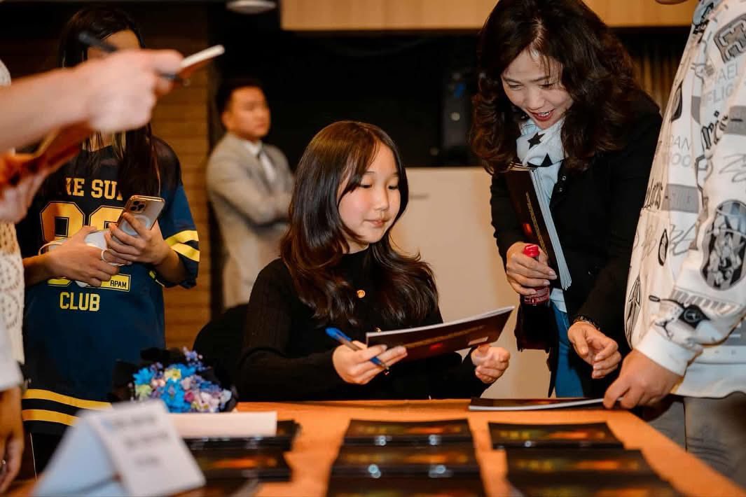 -Миний номын нээлтэд төсөөлснөөс илүү олон хүн ирсэн. Манай ангийн хүүхдүүд, үеэлүүд, аав, ээжийн найзууд нь хүртэл хүүхдүүдээ дагуулаад ирж, баяр хүргэсэн. Миний өмнө нь харж байгаагүй хүмүүс хүртэл ирээд надад баяр хүргэж, бэлэг өгсөн. Зочид маань миний номоос худалдаж аваад надаар гарын үсэг зуруулсан. Өмнө нь тэгж гарын үсэг зурж байгаагүй учраас сонирхолтой, сайхан мэдрэмж өгсөн шүү.