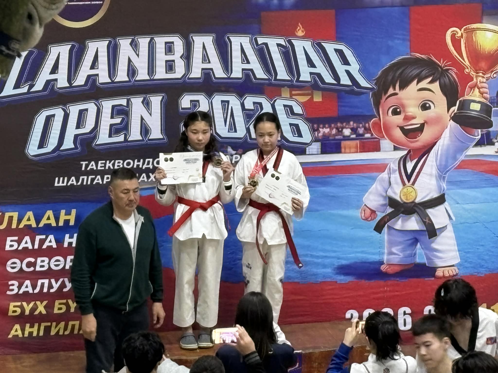 -Миний таеквондогийн анхны багшийг маань Б.Хатанбаатар гэдэг. Таеквондогийн олон улсын хар бүс, дөрөвдүгээр дантай багш байгаа. Багш маань тэеквондогийн дэлхийн “Kukkiwon akademi”-ийн олон улсад багшлах эрхийн сургалтыг төгссөн, Монгол Улсын спортын мастер цолтой, цагдаагийн алба хаагч хүн байдаг.