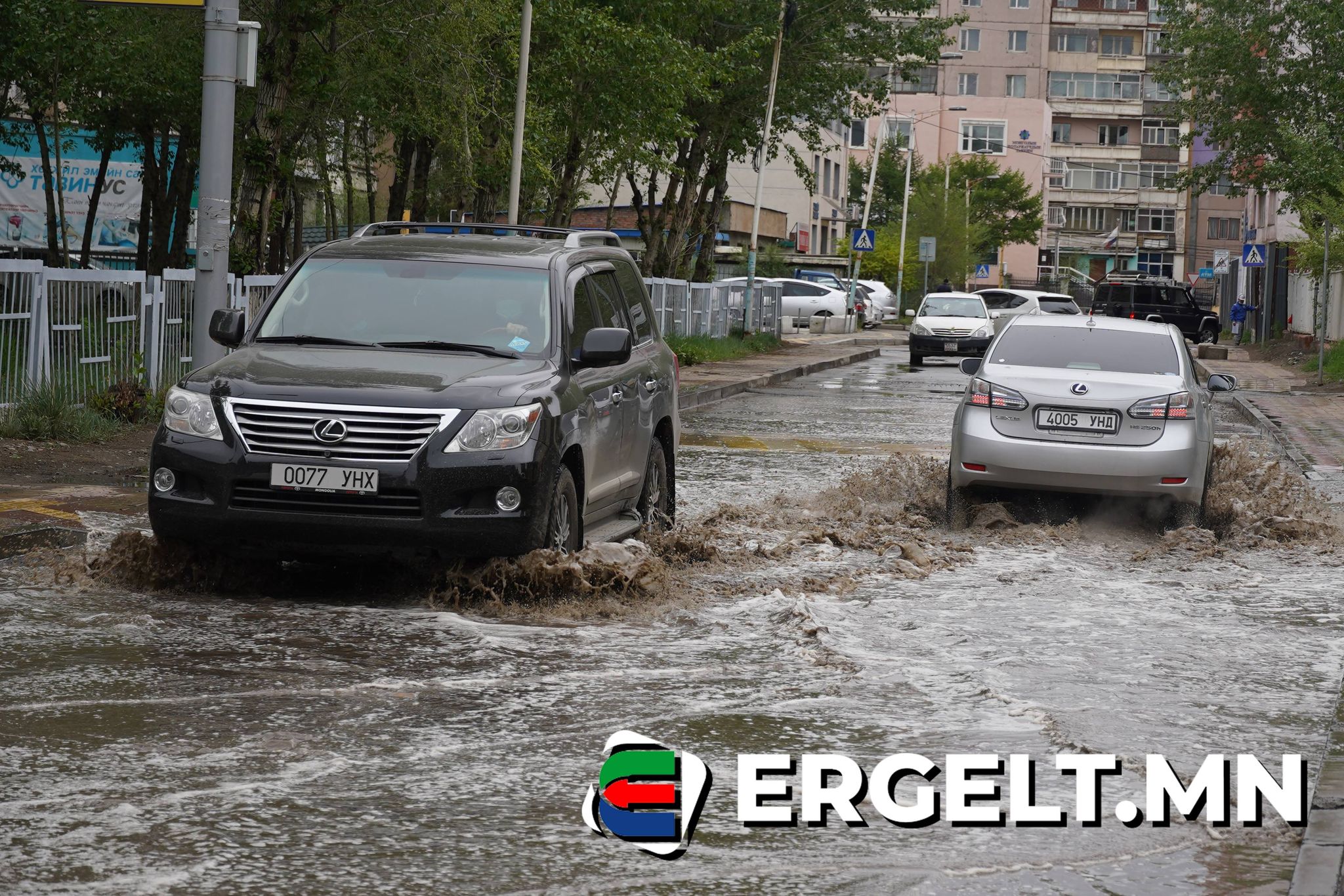 Өнгөрсөн шөнө орсон түр зуурын аадар борооны дараа нийслэлийн авто зам дагуу борооны ус гол шиг үерлэж, хүн, машин явах боломжгүй болсон байгаа харагдана. Ганцхан шөнийн түр зуурын бороонд ийн Улаанбаатар усанд автаж, авто зам дээр "гол урсаж" байх жишээтэй. Жил бүрийн зуны улиралд авто замын ус зайлуулах хоолойн асуудал маргаан дагуулдагч өнөөдрийг хүртэл шийдсэн зүйлгүй байгааг доорх гэрэл зургуудаар харуулж байна.